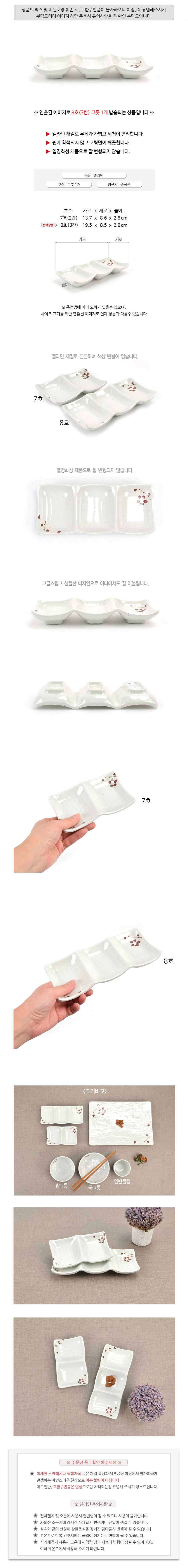 상품명:멜라민 3구 종지 나눔접시 소스 반찬 그릇 19.5cm 8호