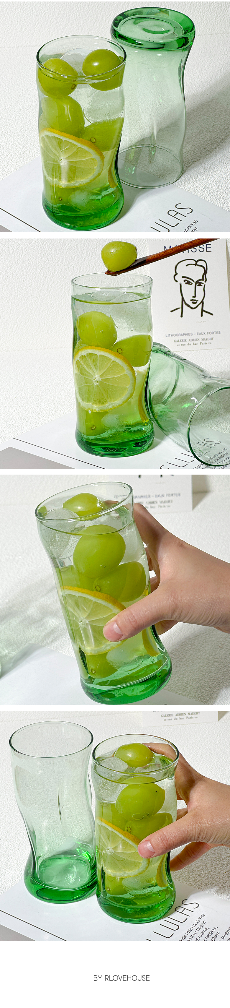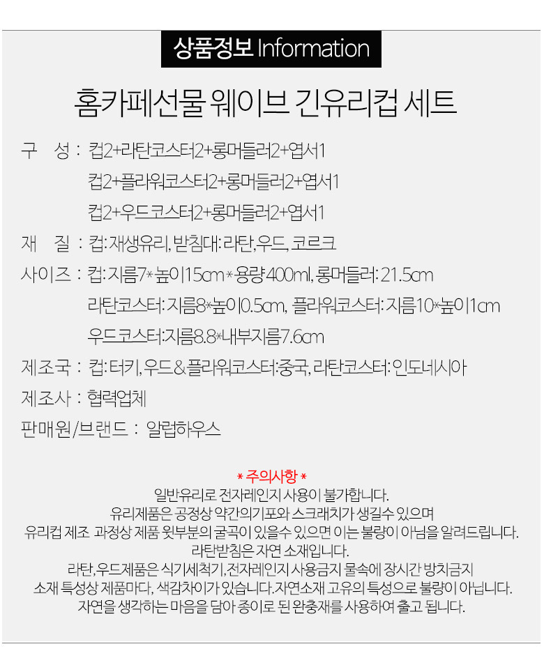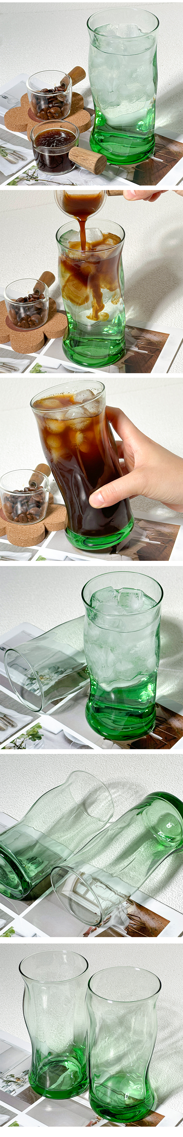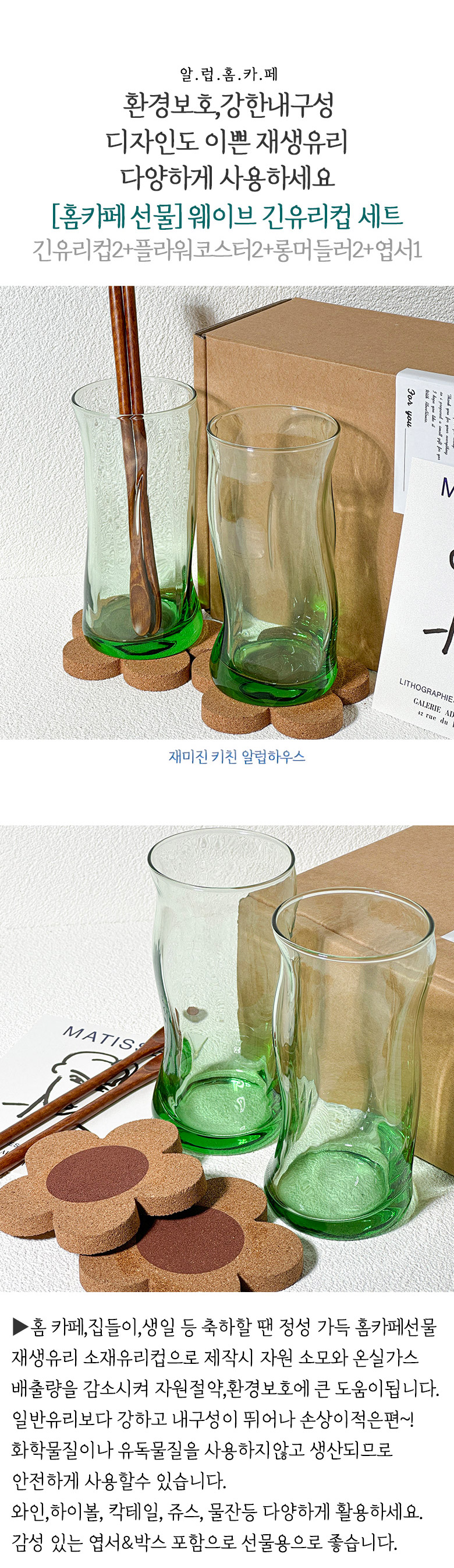 홈카페 선물 웨이브 긴유리컵 (플라워코스터 구성)