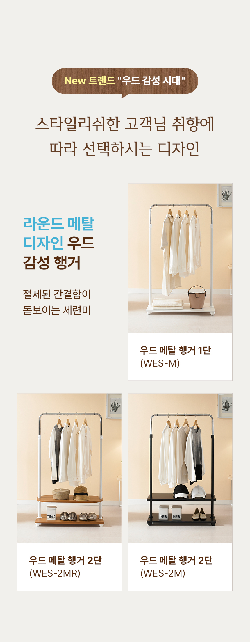 국민튼튼 이동식 스탠드 인테리어 선반 행거 WES-M 우드 감성 메탈 모음