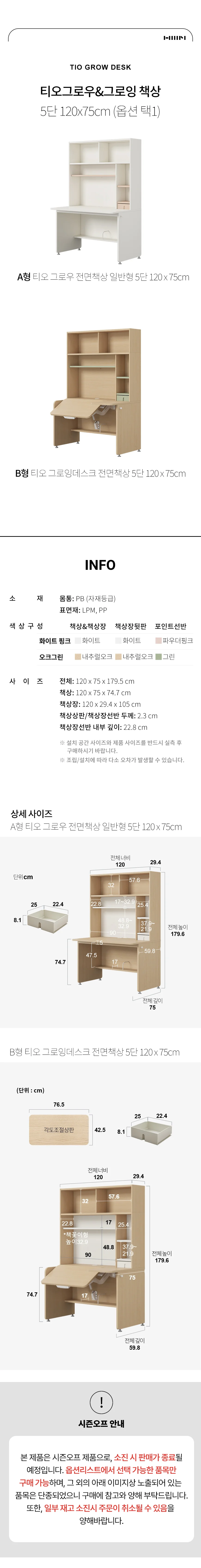티오 그로우 전면책상 일반형 5단 120X75cm (옵션 택1)