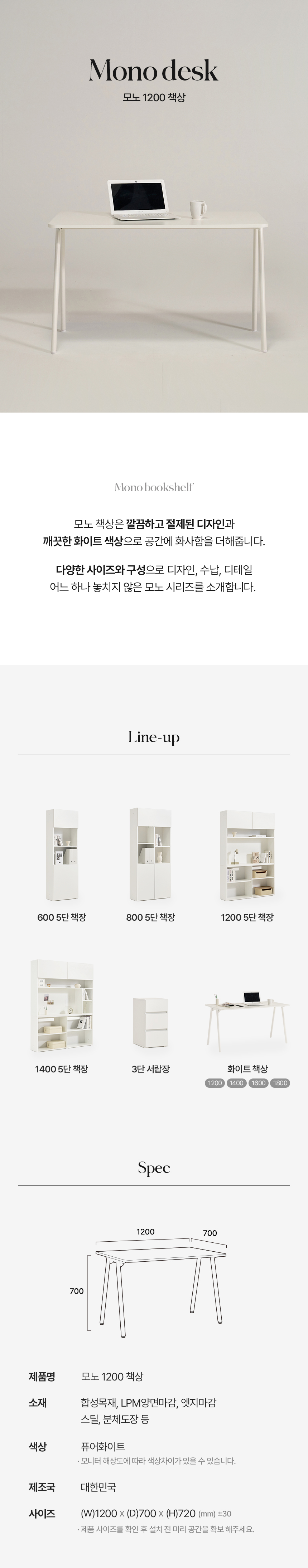 모노 1200 책상 화이트 데스크 학생 공부방 홈오피스 컴퓨터책상
