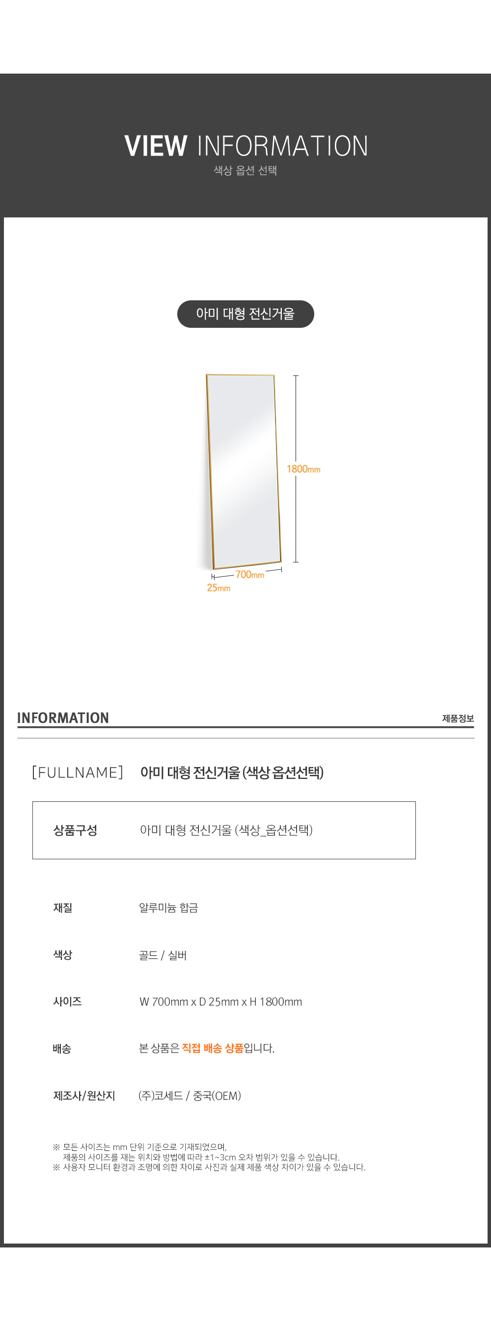 숨결 말리 대형 전신거울