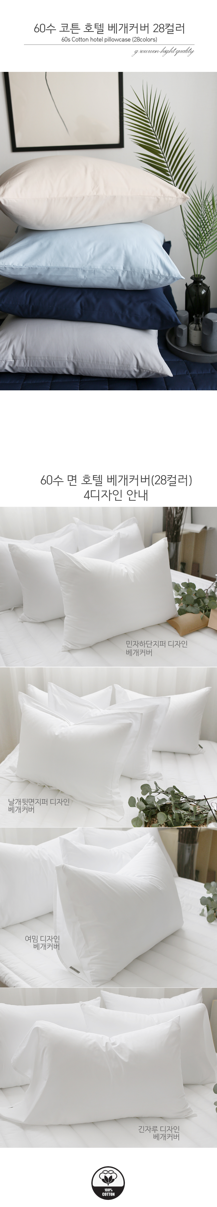 [ 다양한 사이즈맞춤제작 / 친환경 인증 100% 순면 제작 / 민자 여밈 긴자루 날개형 베개커버 / 28컬러 / 호텔 베개커버 / 사계절 베개커버]