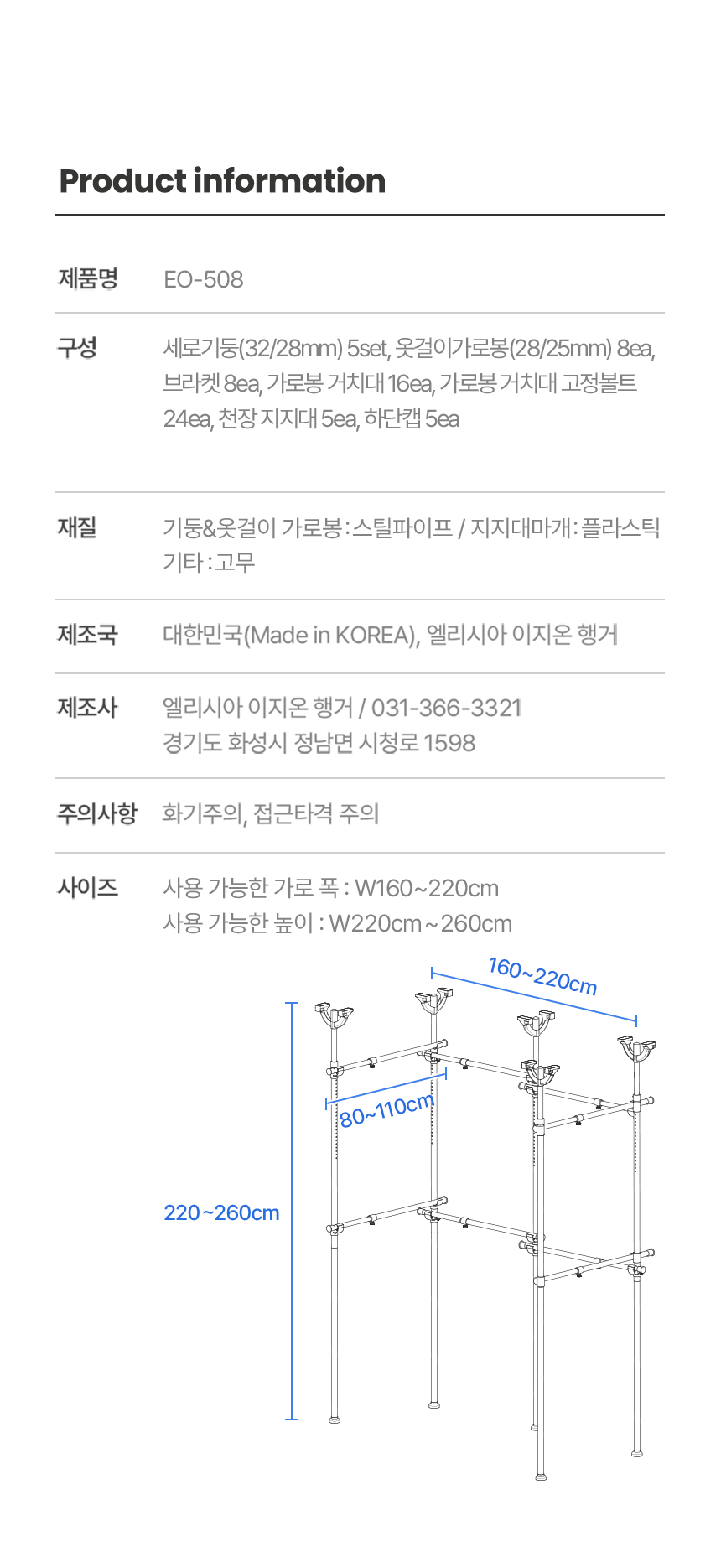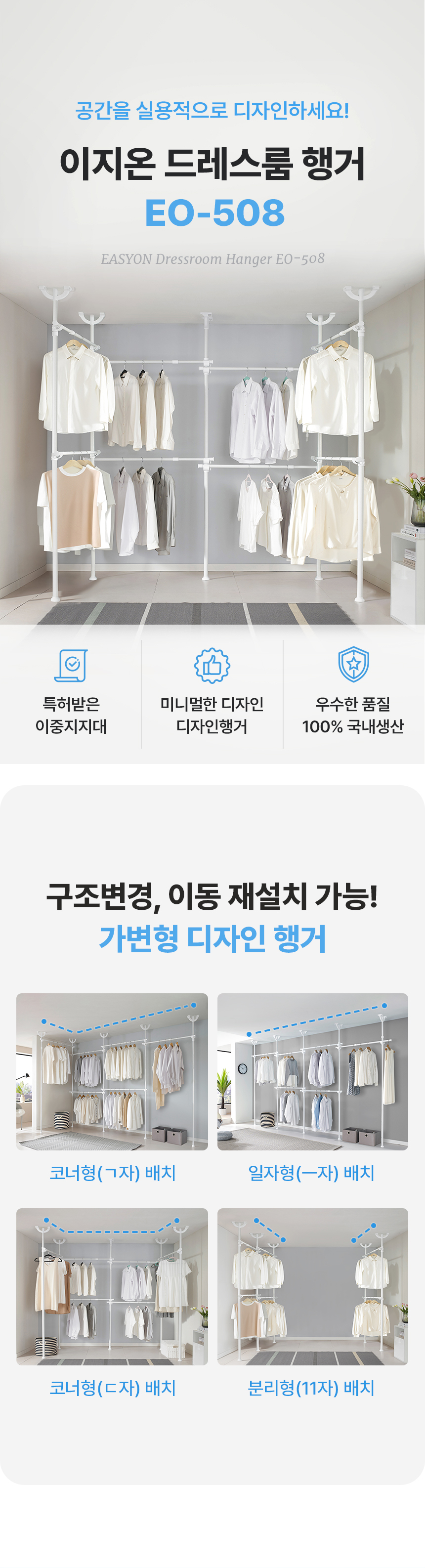 이지온 국민튼튼 행거 EO-508 ㄷ자 드레스룸 옷걸이 5단 행거