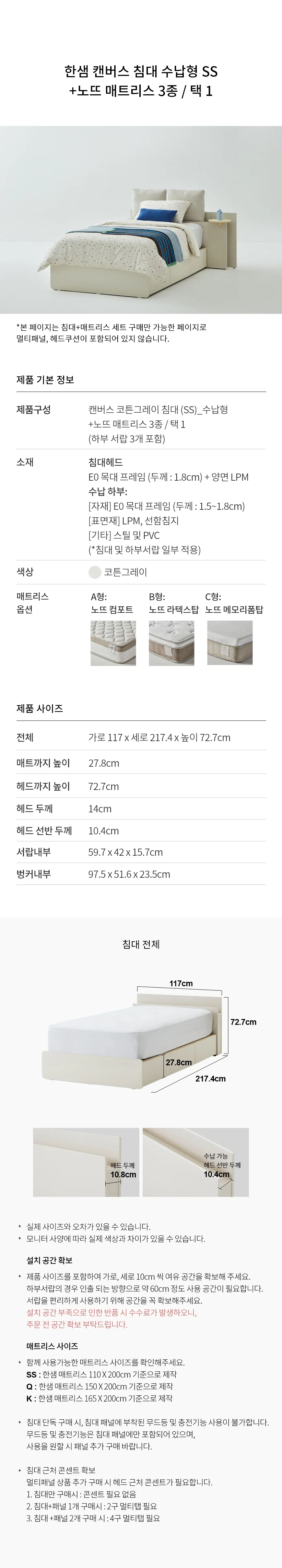 호텔침대 캔버스 수납형 SS + 노뜨 매트리스
