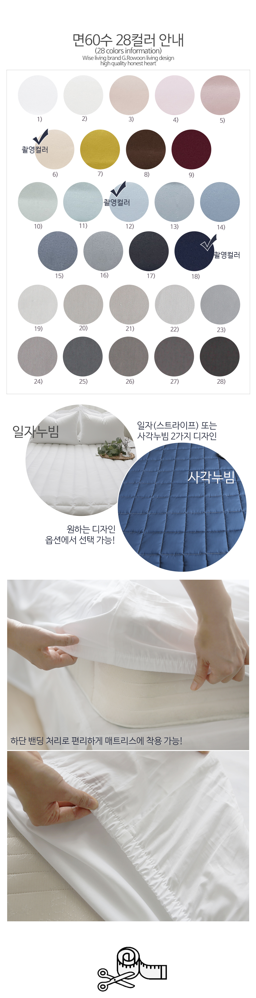 [일석이조 매트리스패드+커버 / 친환경 인증 100% 순면 제작 / 하단 편리한 밴딩 / 부드러운 감촉 / 28컬러 / 사이즈맞춤제작 / 대형 패밀리사이즈 제작 가능 / 사계절 커버]