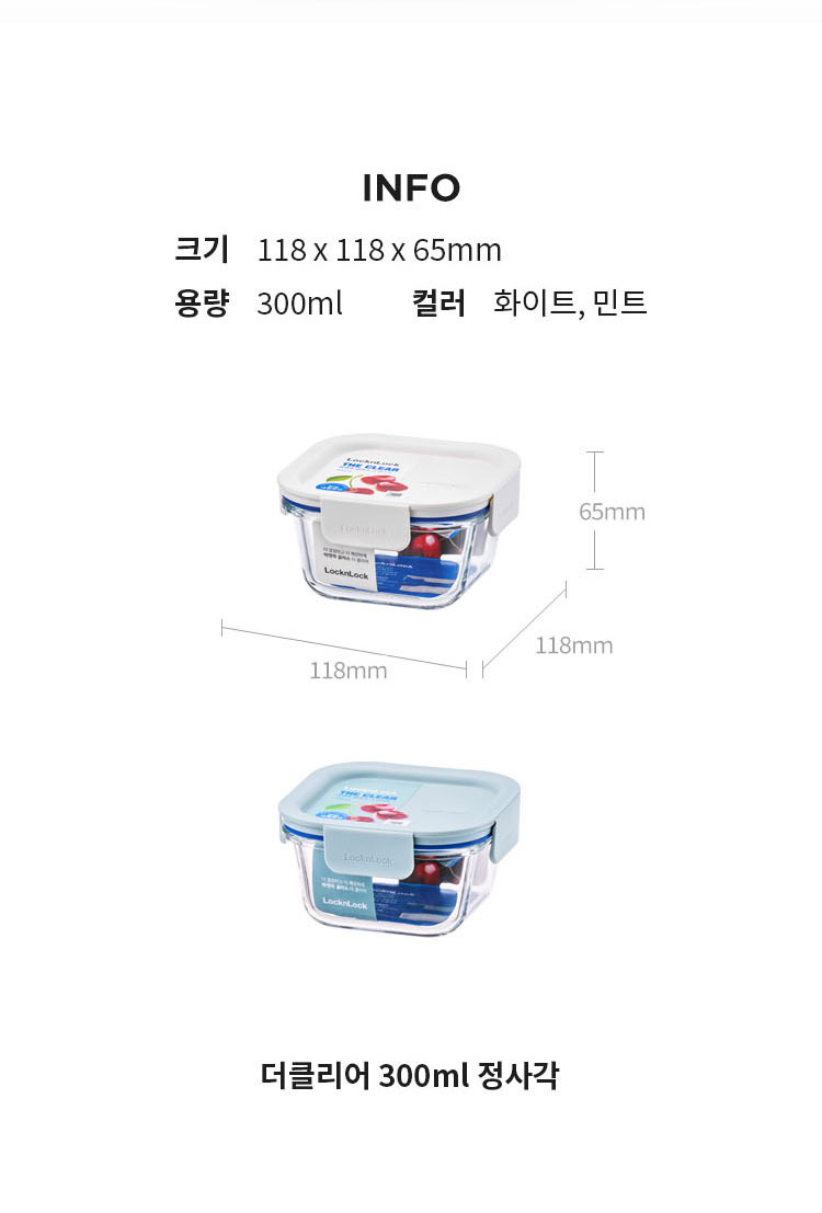 락앤락 더 클리어 정사각 300ml 2P 화이트 밀폐용기 반찬통 보관 유리 소분용기 TOP_LNG205WHTs2