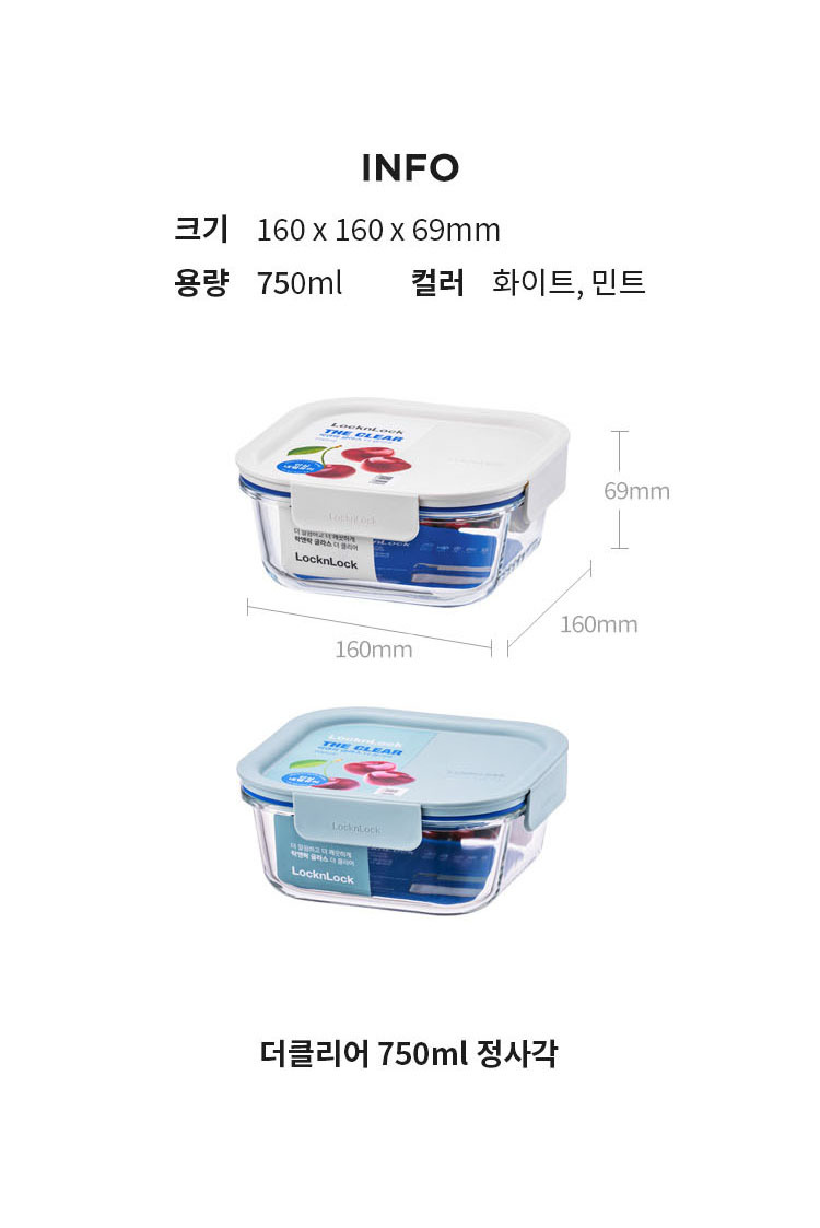 락앤락 더 클리어 정사각 750ml 2P 화이트 밀폐용기 반찬통 보관 유리 소분용기 TOP_LNG224WHTs2