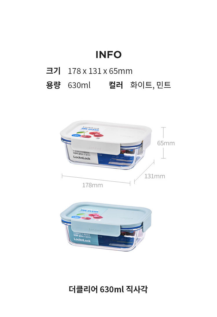 락앤락 더 클리어 직사각 630ml 2P 화이트 밀폐용기 반찬통 보관 유리 소분용기 TOP_LNG428WHTs2