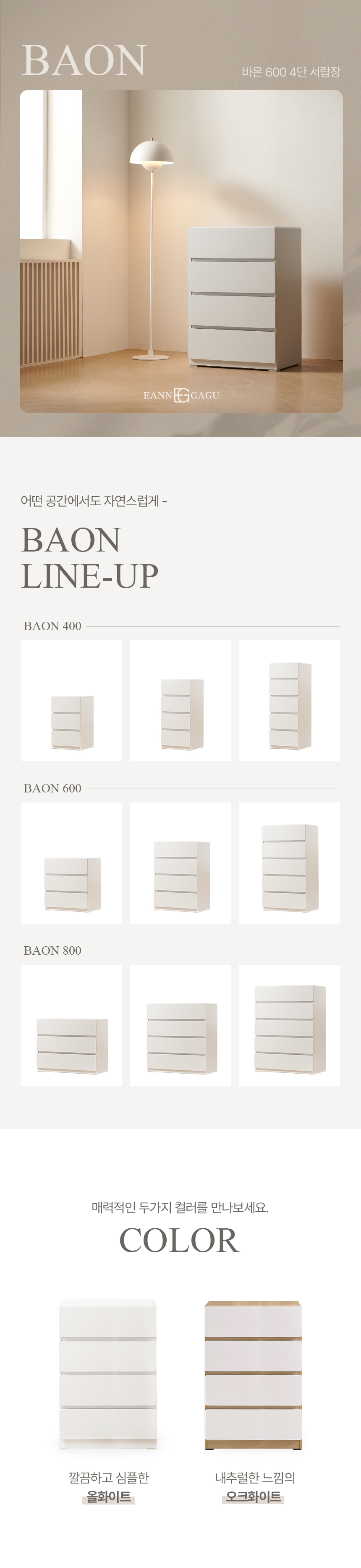 바온 4단 서랍장 600 수납장 라운드모서리