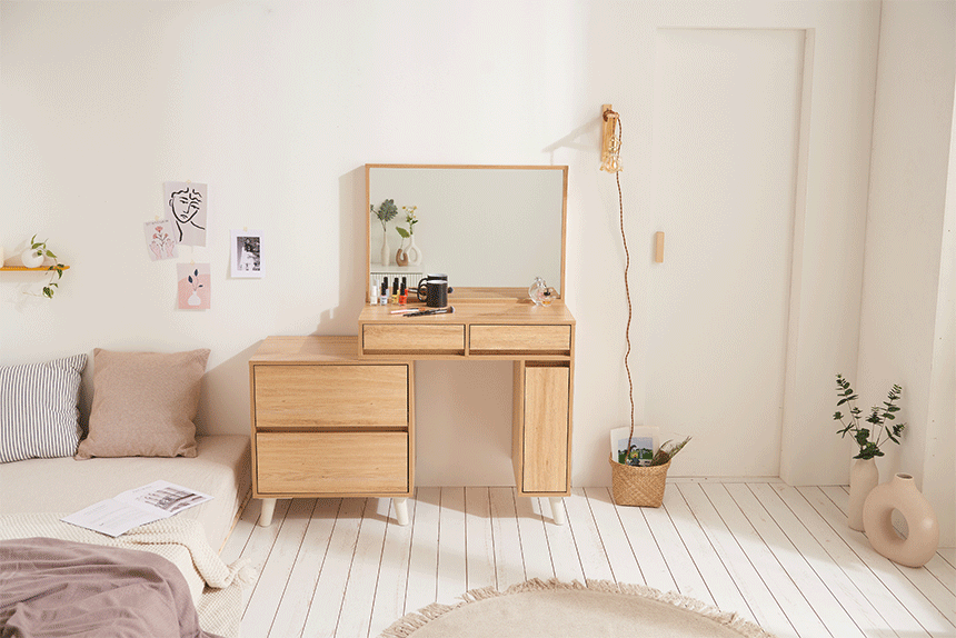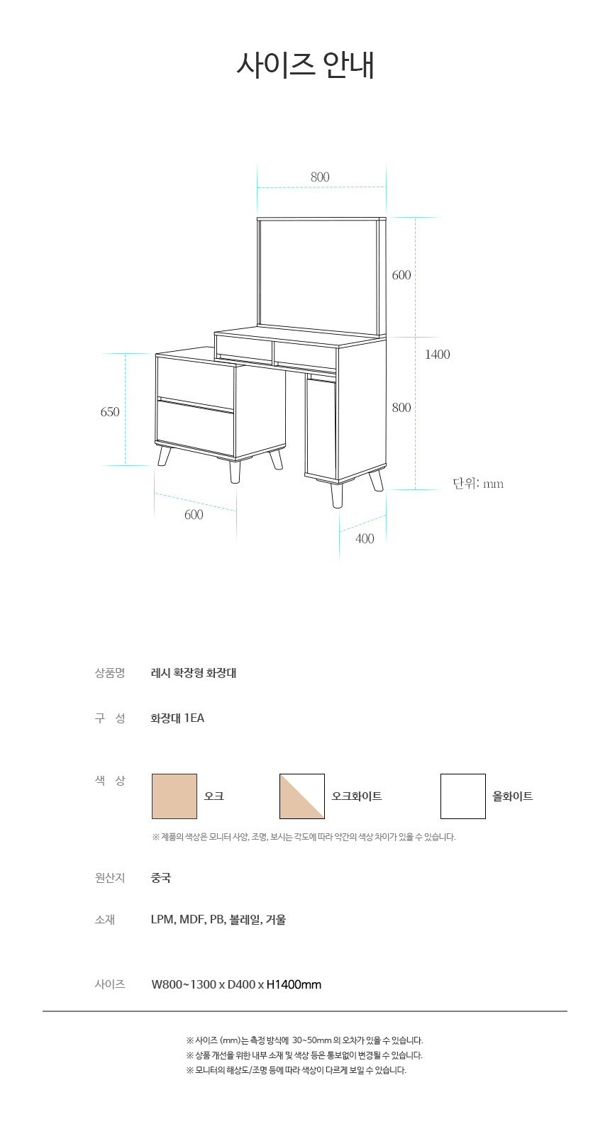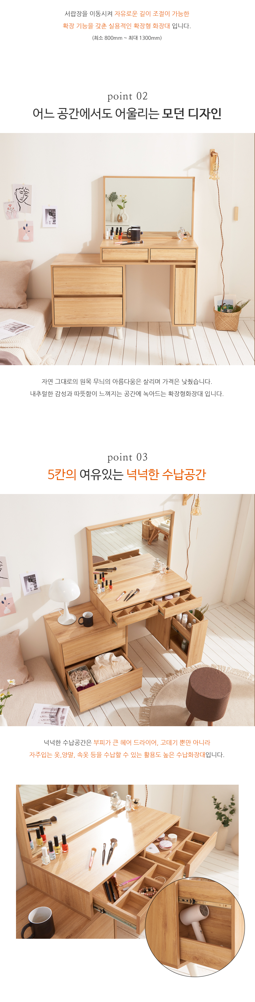 레시 800 콘솔 서랍형 폭조절 확장형 화장대 세트 거울 포함