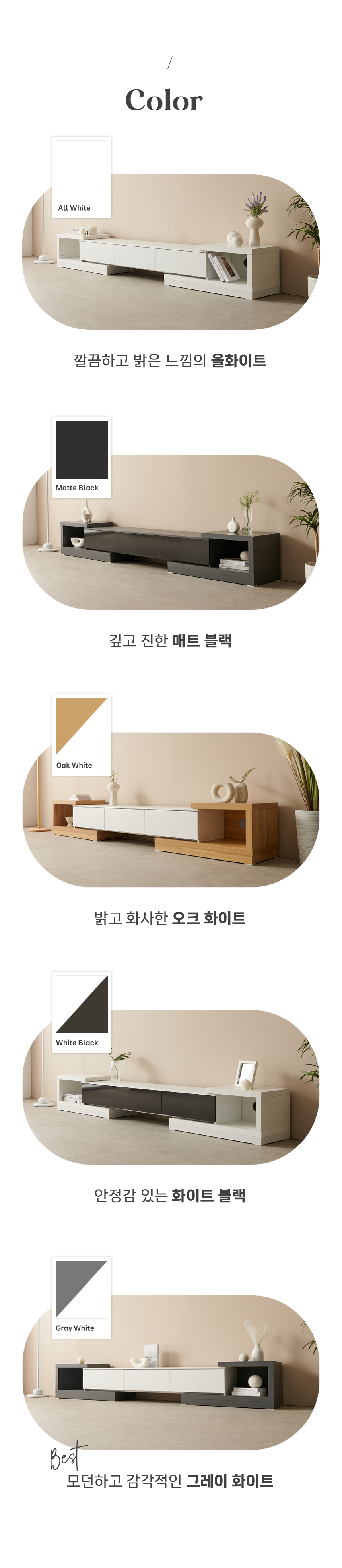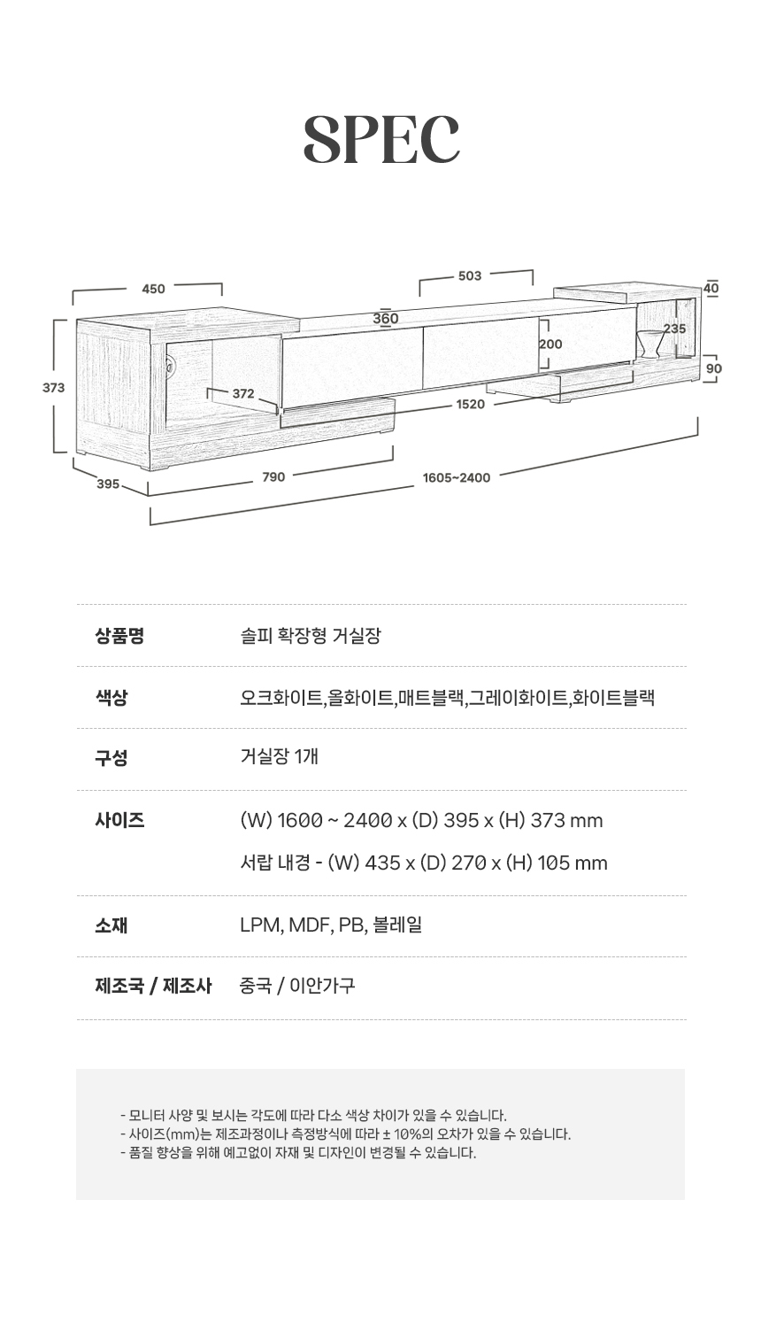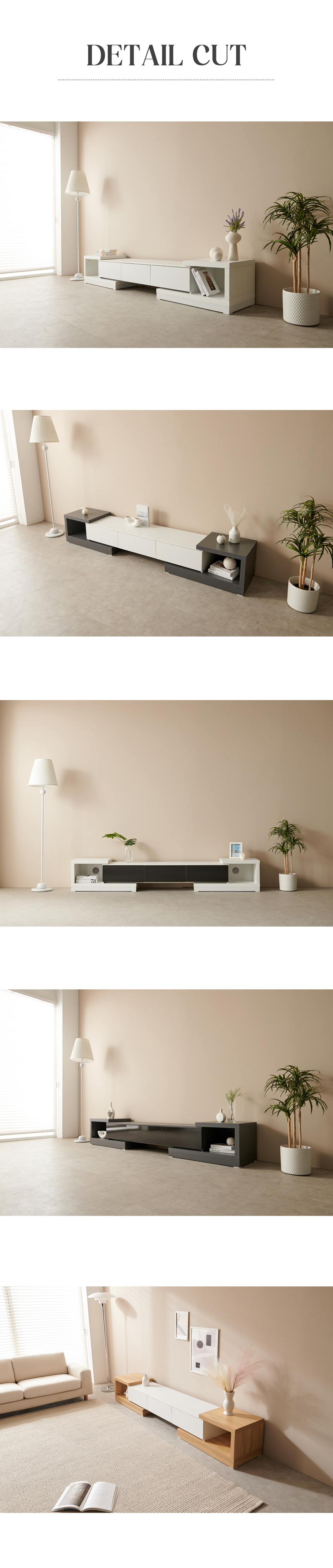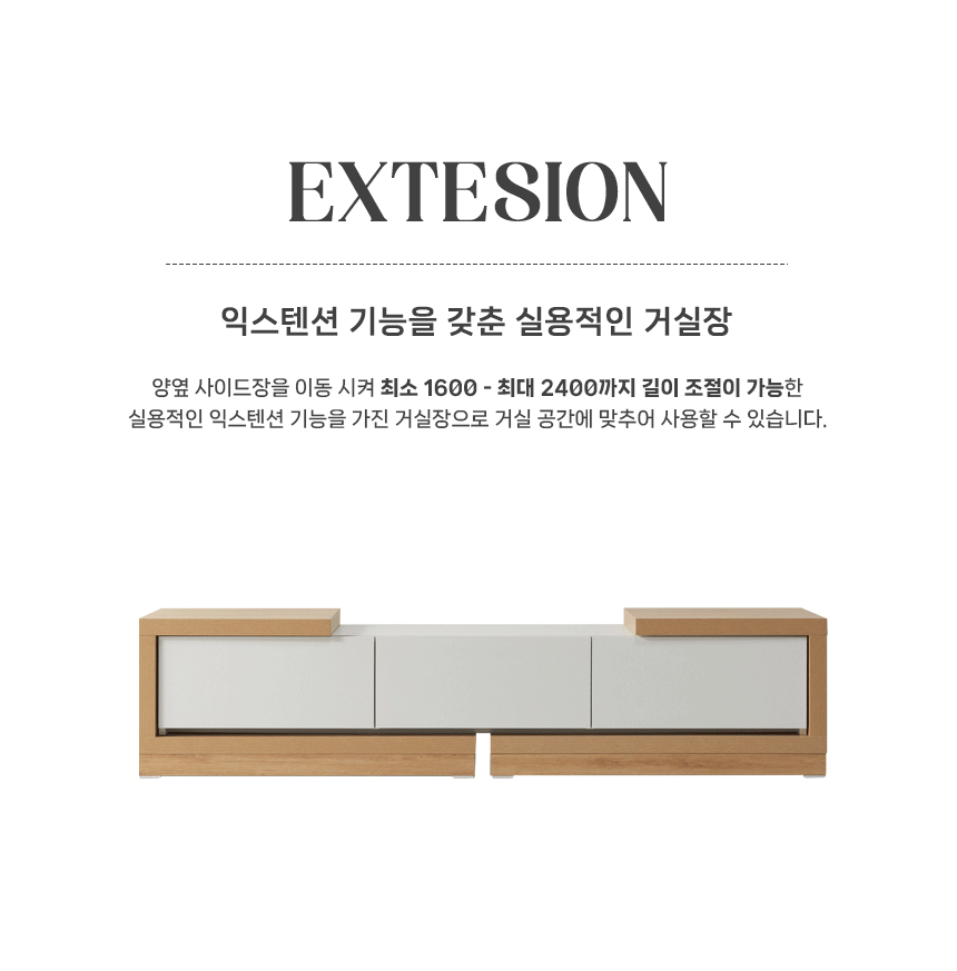 솔피 1600 확장형 거실장 오크화이트 티비다이 tv장 높은거실장