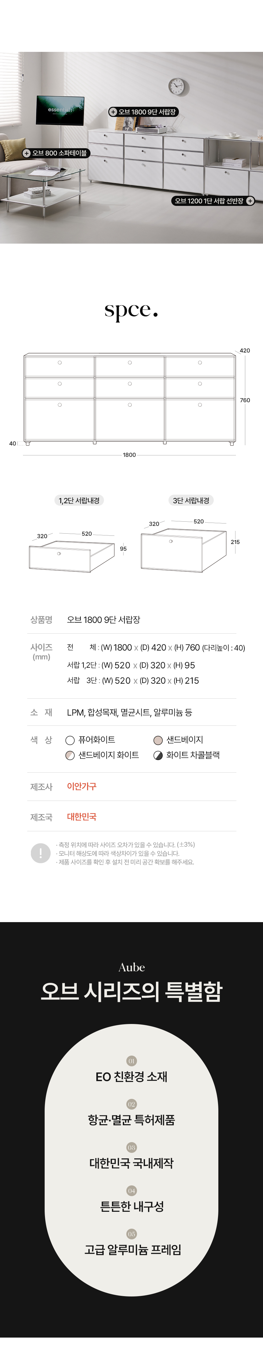오브 모듈 3단 1800 와이드 서랍장 수납 거실장