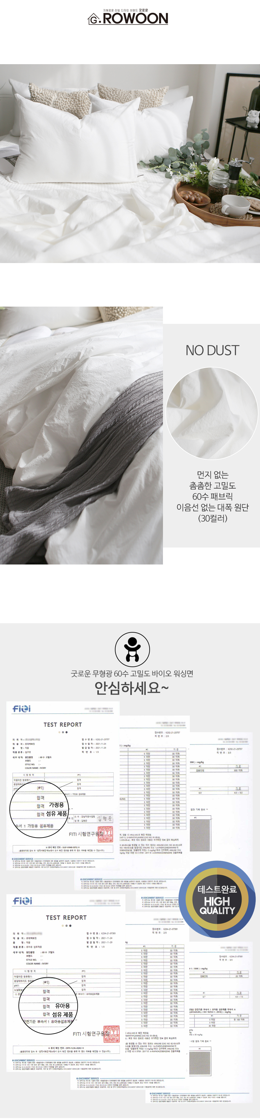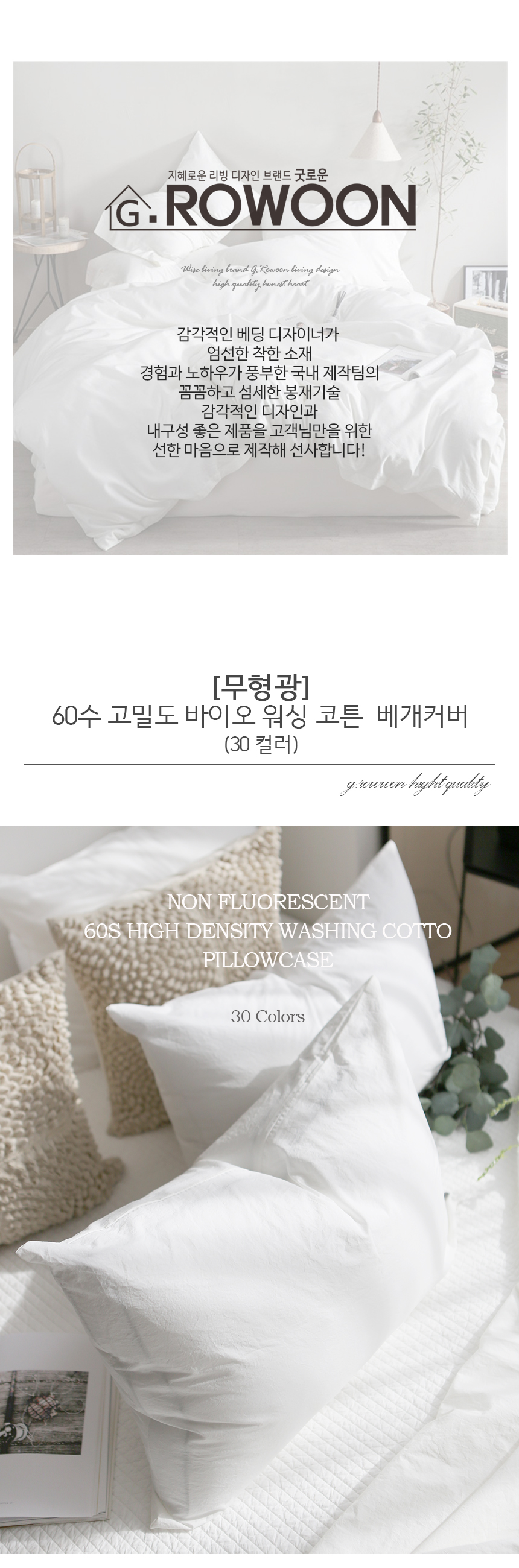 100% 무형광 60수 고밀도 워싱면