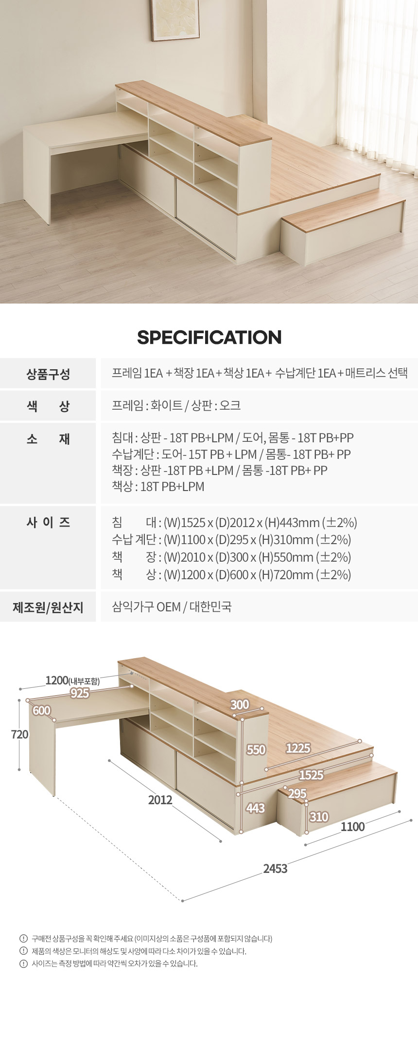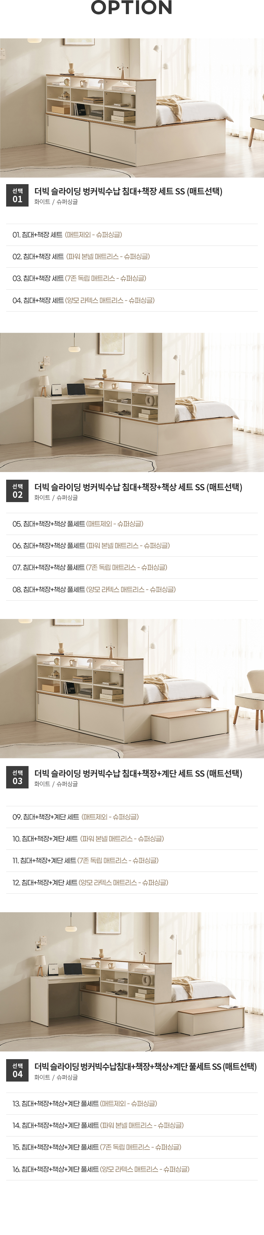 [특가 ~2/9]더빅 슬라이딩 벙커빅수납 침대 SS (계단+책장+책상 구성선택)