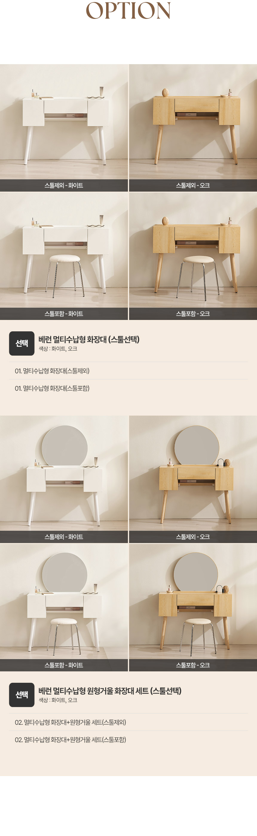 삼익가구 베런 멀티수납형 원형거울 화장대 시리즈 (스툴선택)