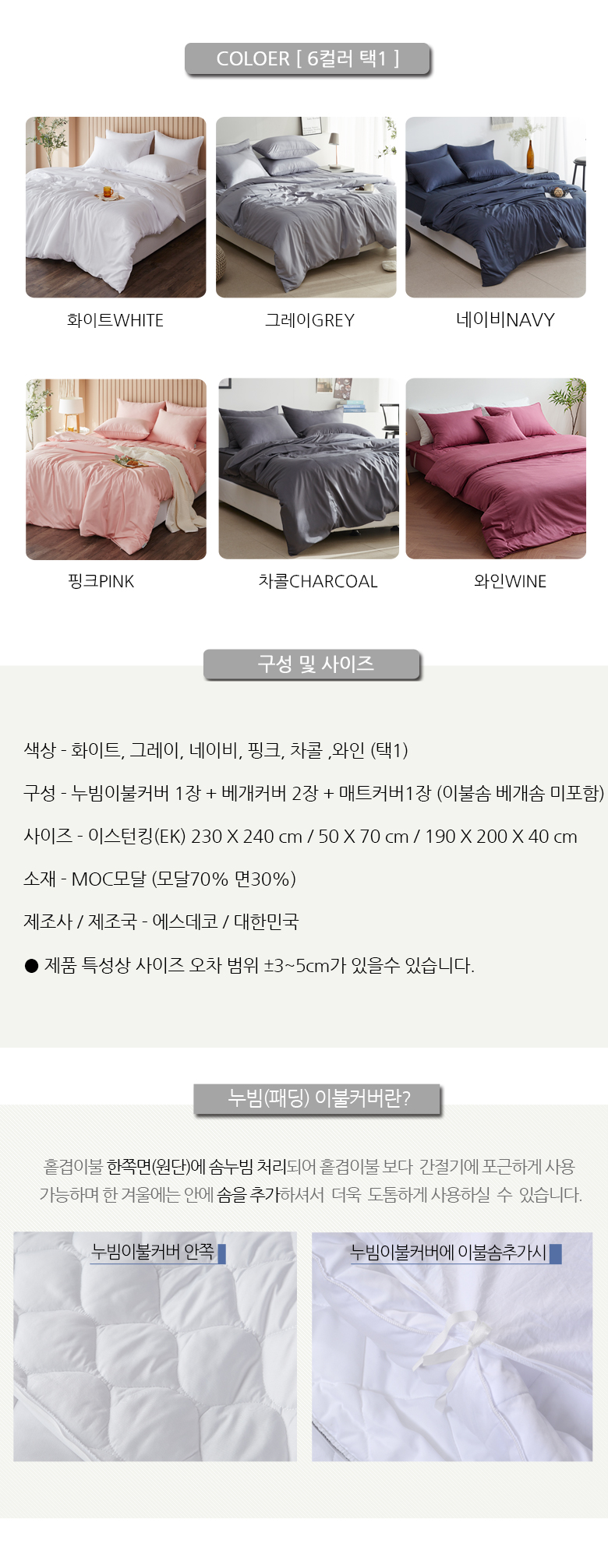 MOC면모달 보들보들한 패딩이불커버매카세트EK 화이트