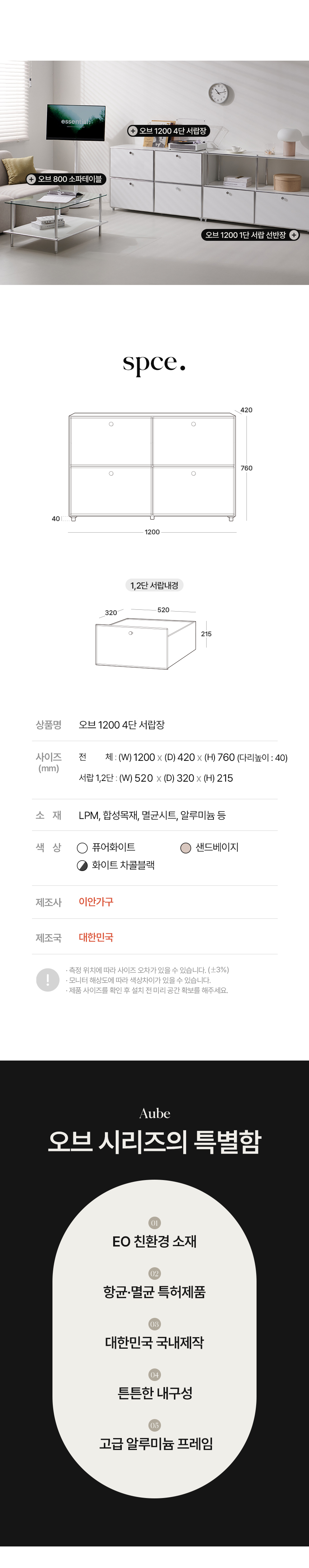 오브 모듈 2단 1200 와이드 서랍장 수납 거실장