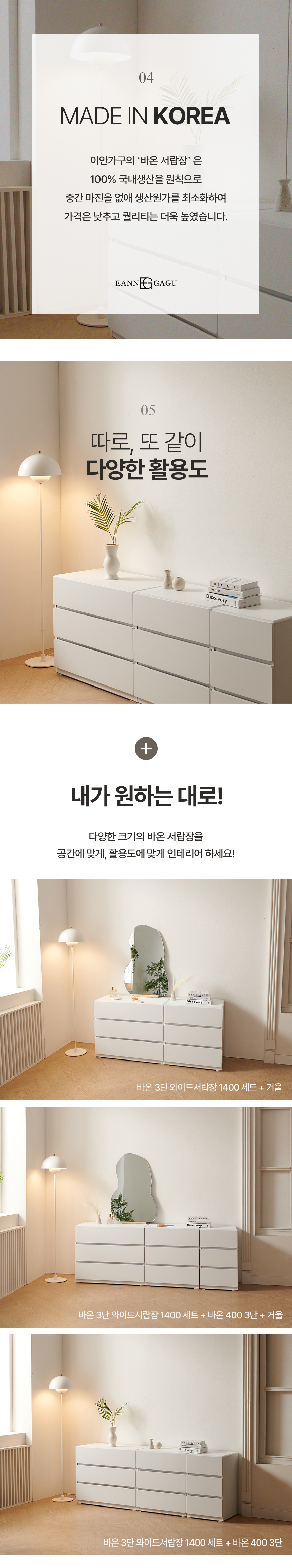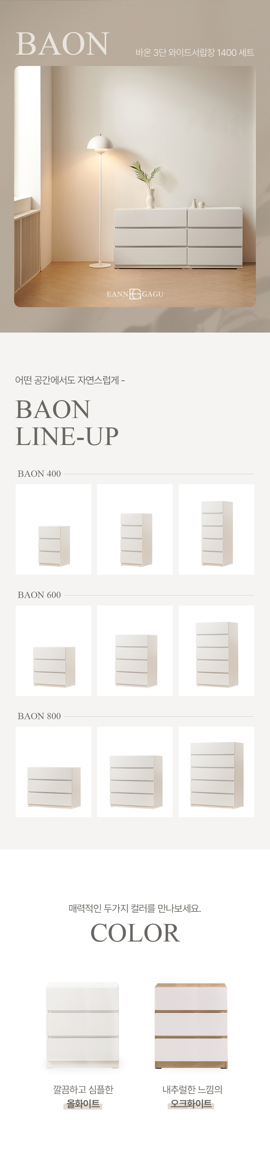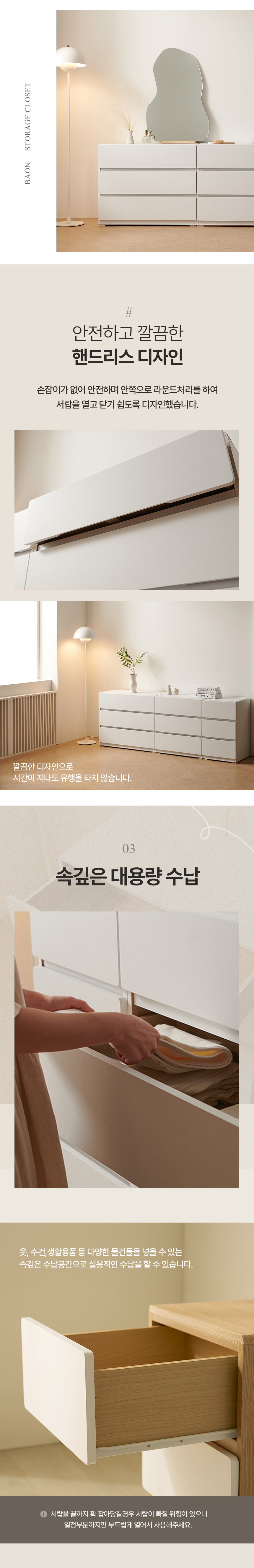 바온 와이드 3단 서랍장 1400 대용량 수납장 라운드모서리