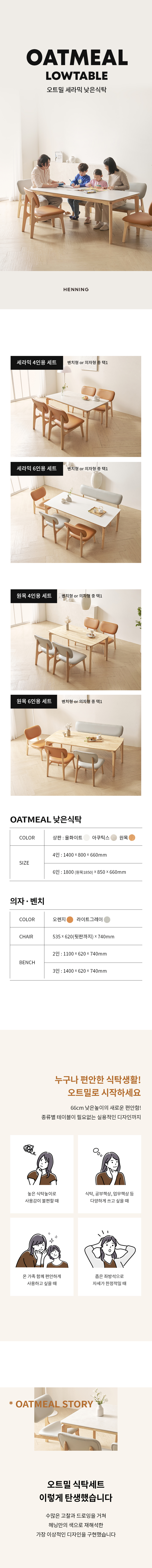 [특가 ~2/9]오트밀 원목 세라믹 식탁 4인용 6인용 낮은식탁 식탁세트