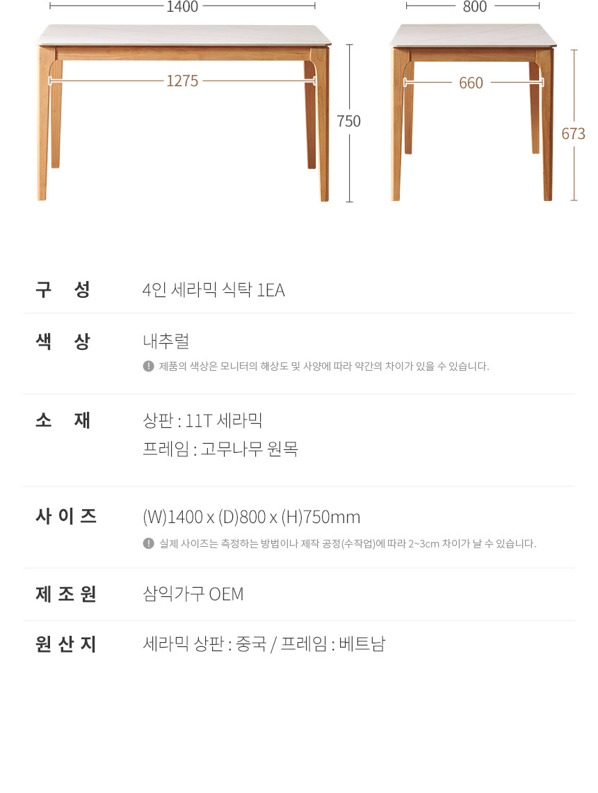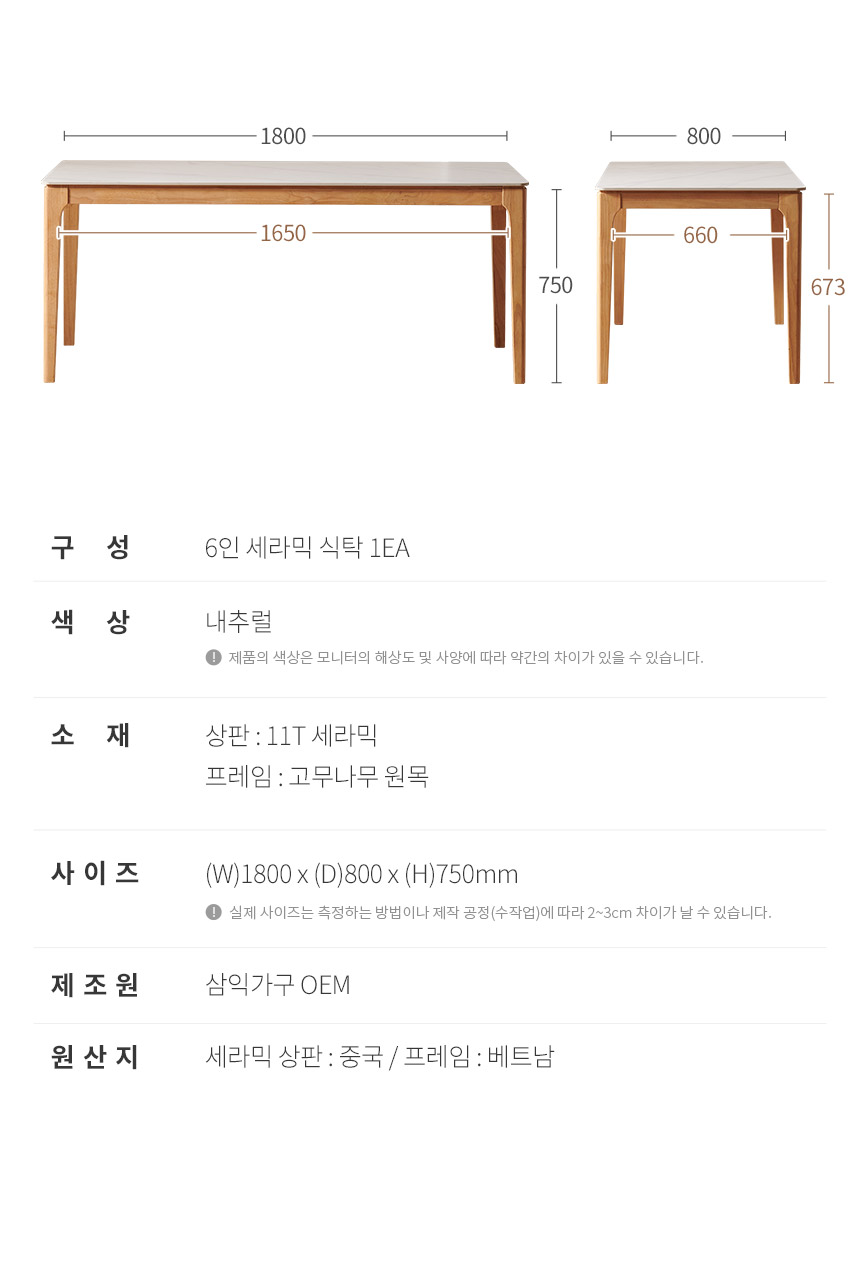 삼익가구 퍼팩트 통세라믹 원목 식탁 테이블 시리즈