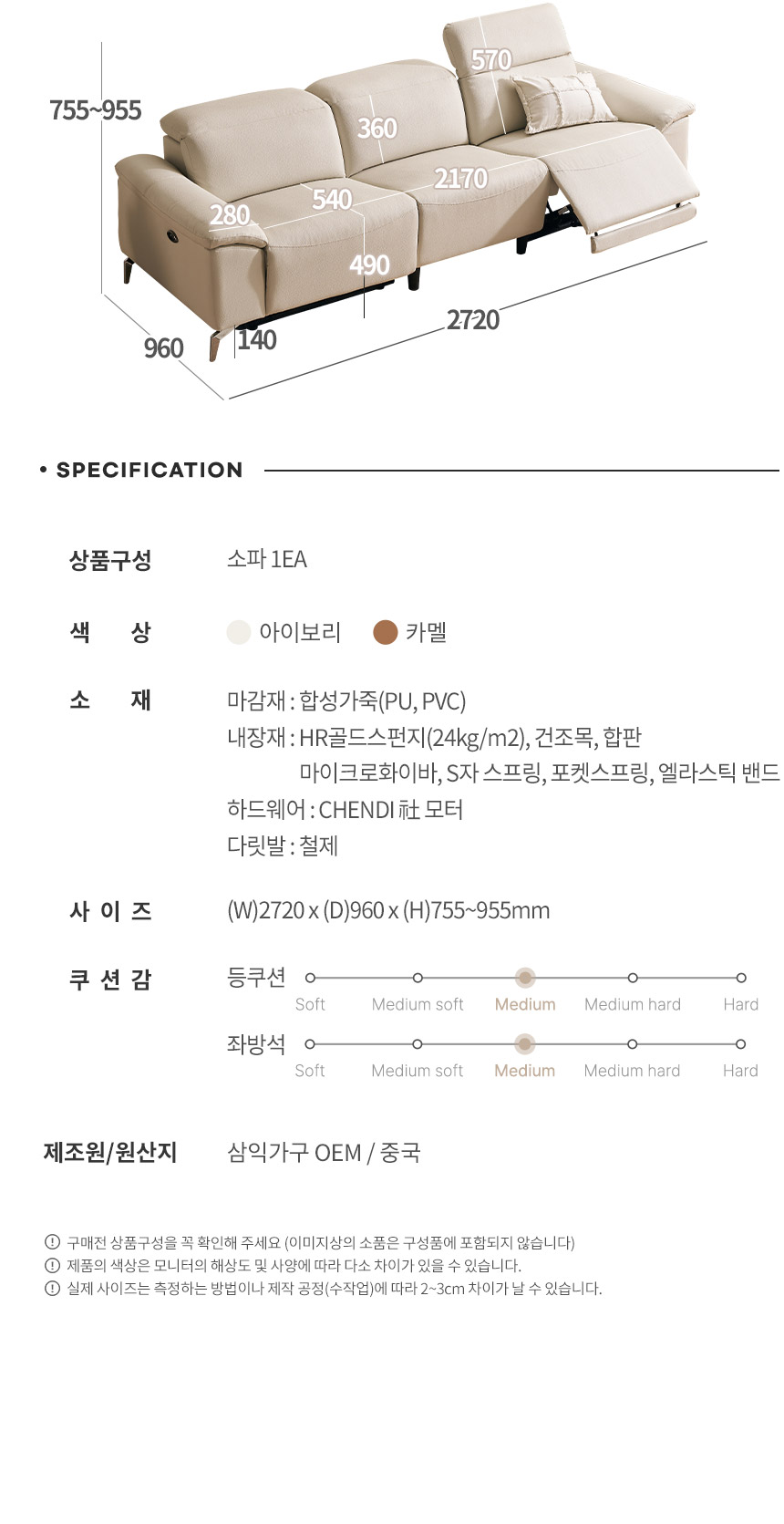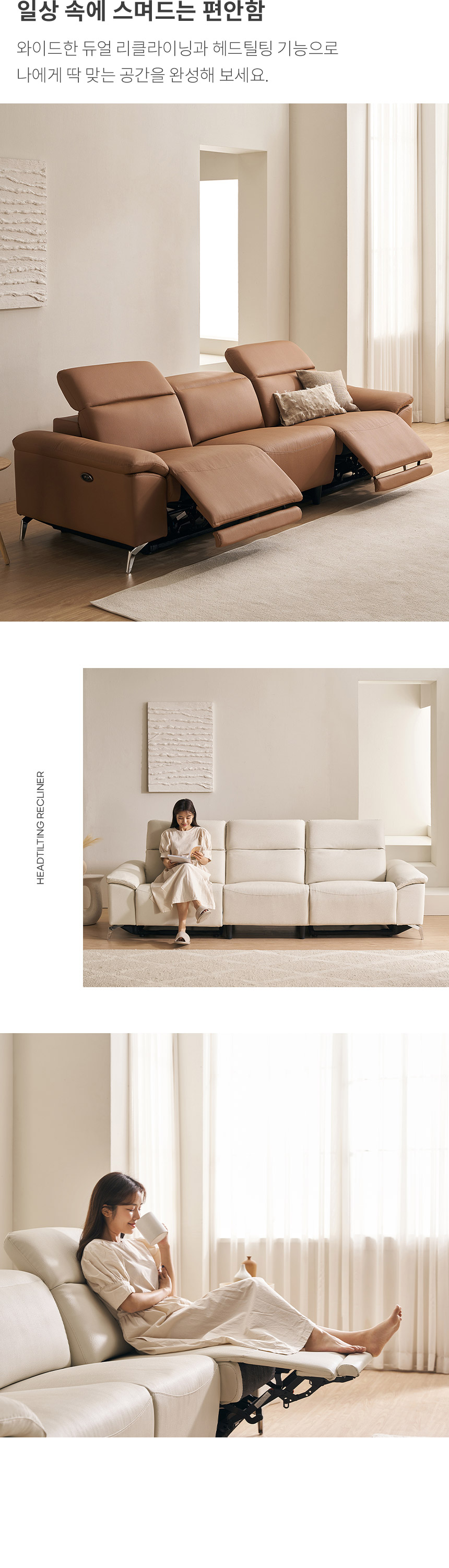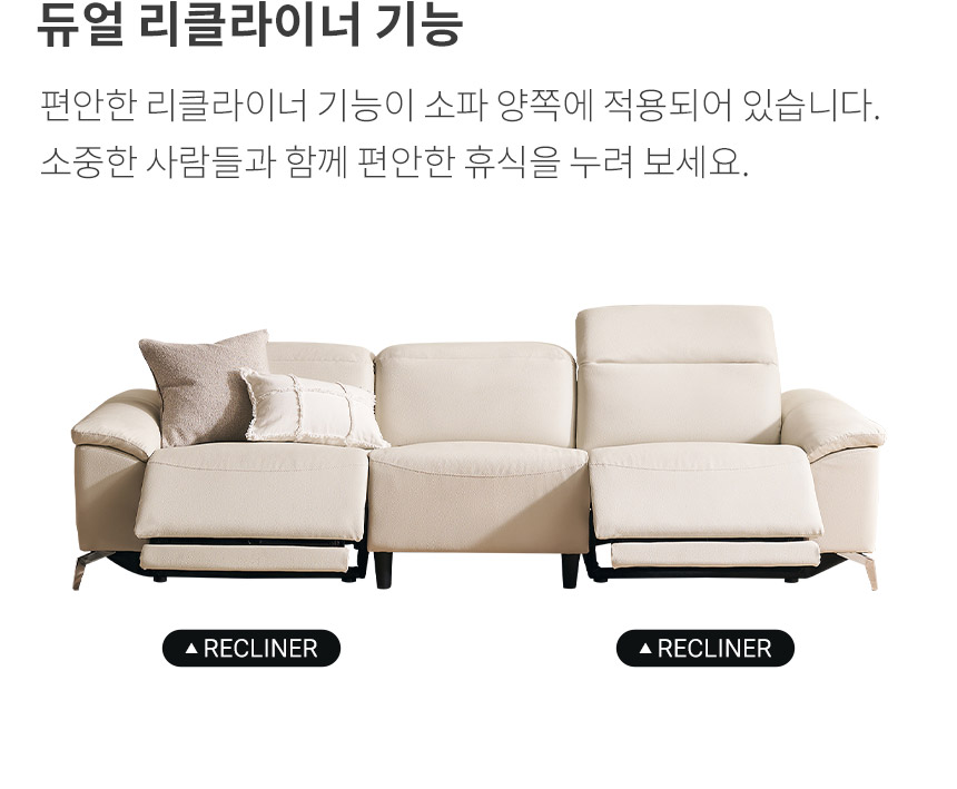삼익가구 메이든 제로월 헤드틸팅 4인용 전동 리클라이너 가죽소파 (단품)