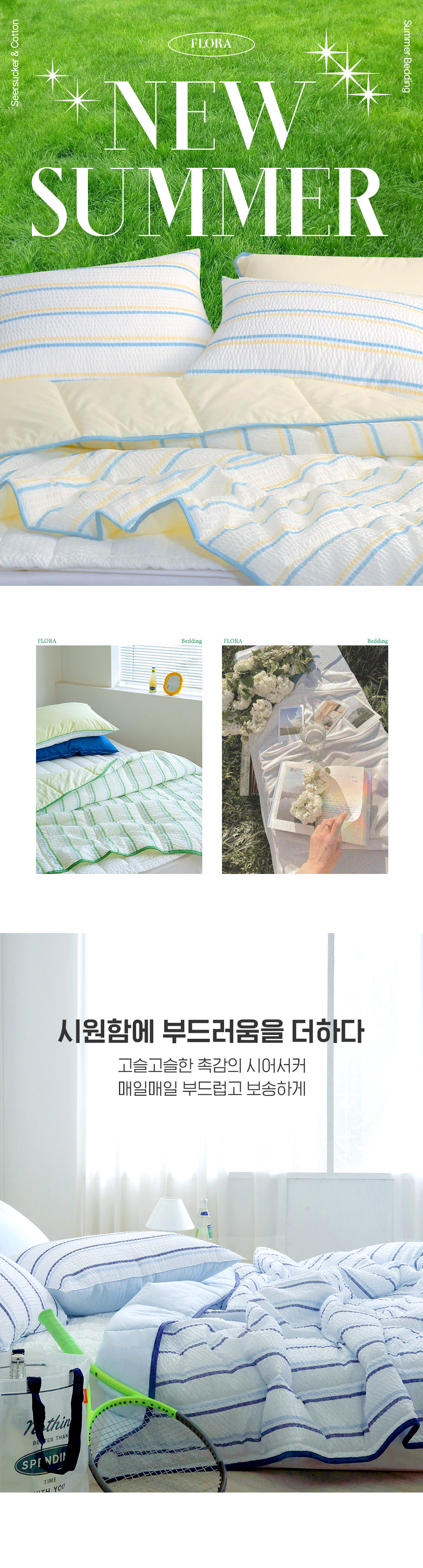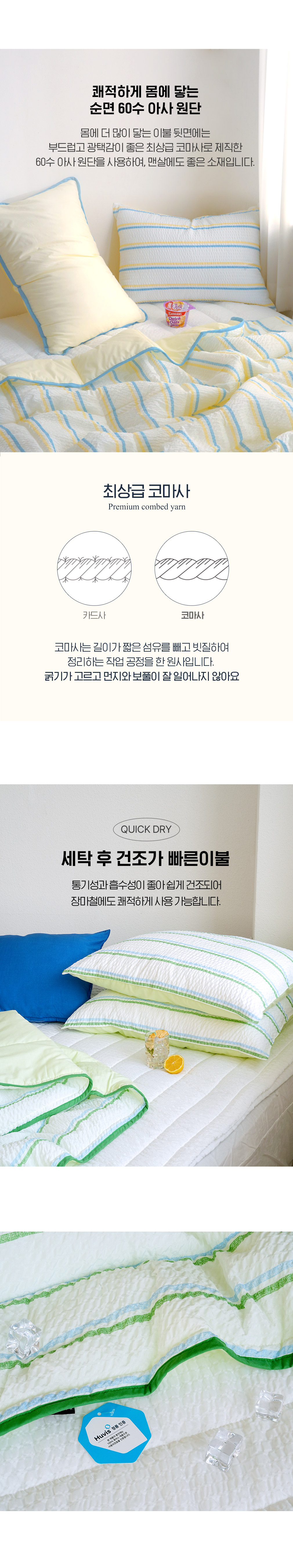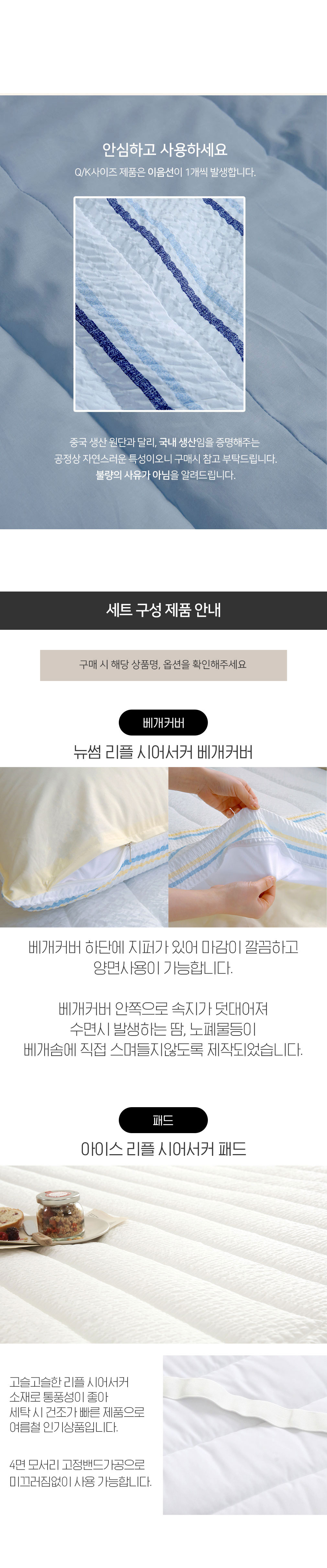 뉴썸머 시어서커 60수 아사면 여름 차렵이불 패드세트 SS/Q