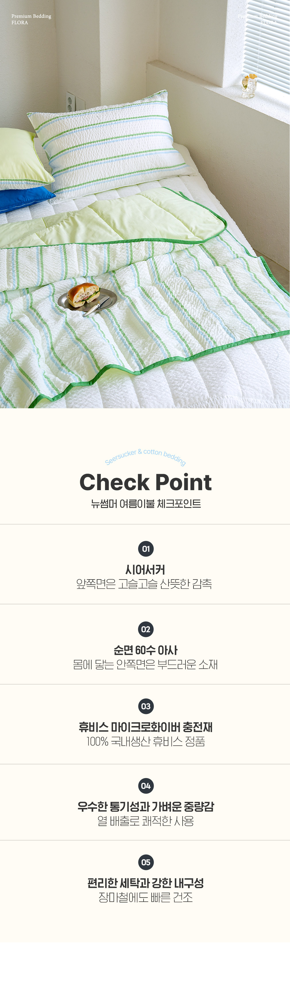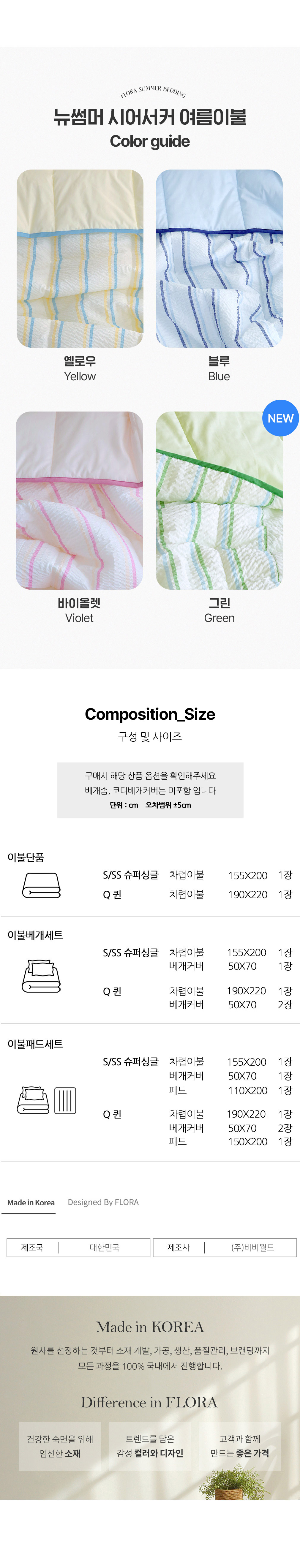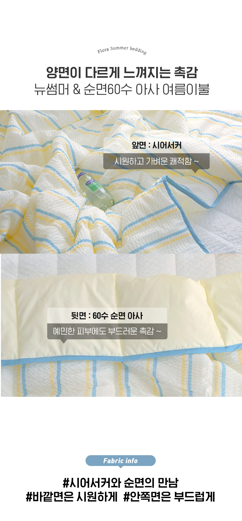 뉴썸머 시어서커 60수 아사면 여름 차렵이불 패드세트 SS/Q