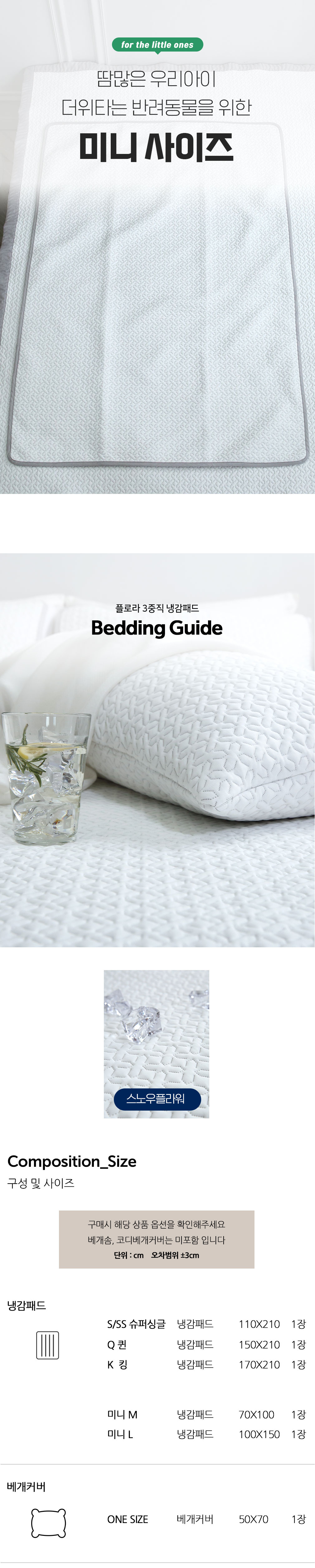 스노우플라워 휴비스 듀라론 고밀도 고중량 냉감패드 미니M/미니L/SS/Q/K