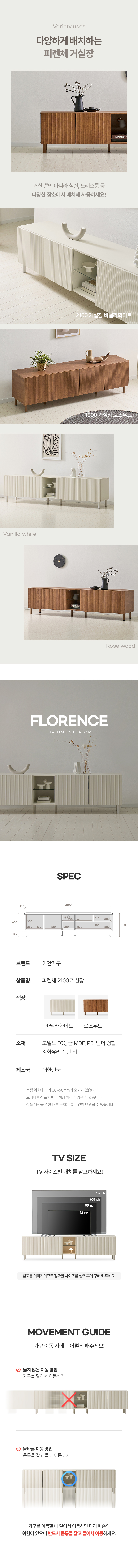 피렌체 2100 플랫템바보드 수납 높은 거실장 티비다이 E0등급