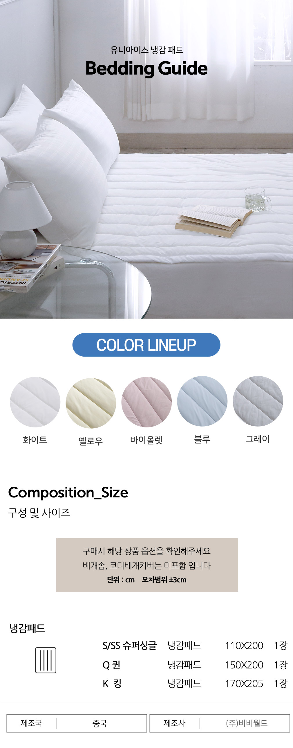 유니아이스 냉감 침대패드 단품 SS/Q/K