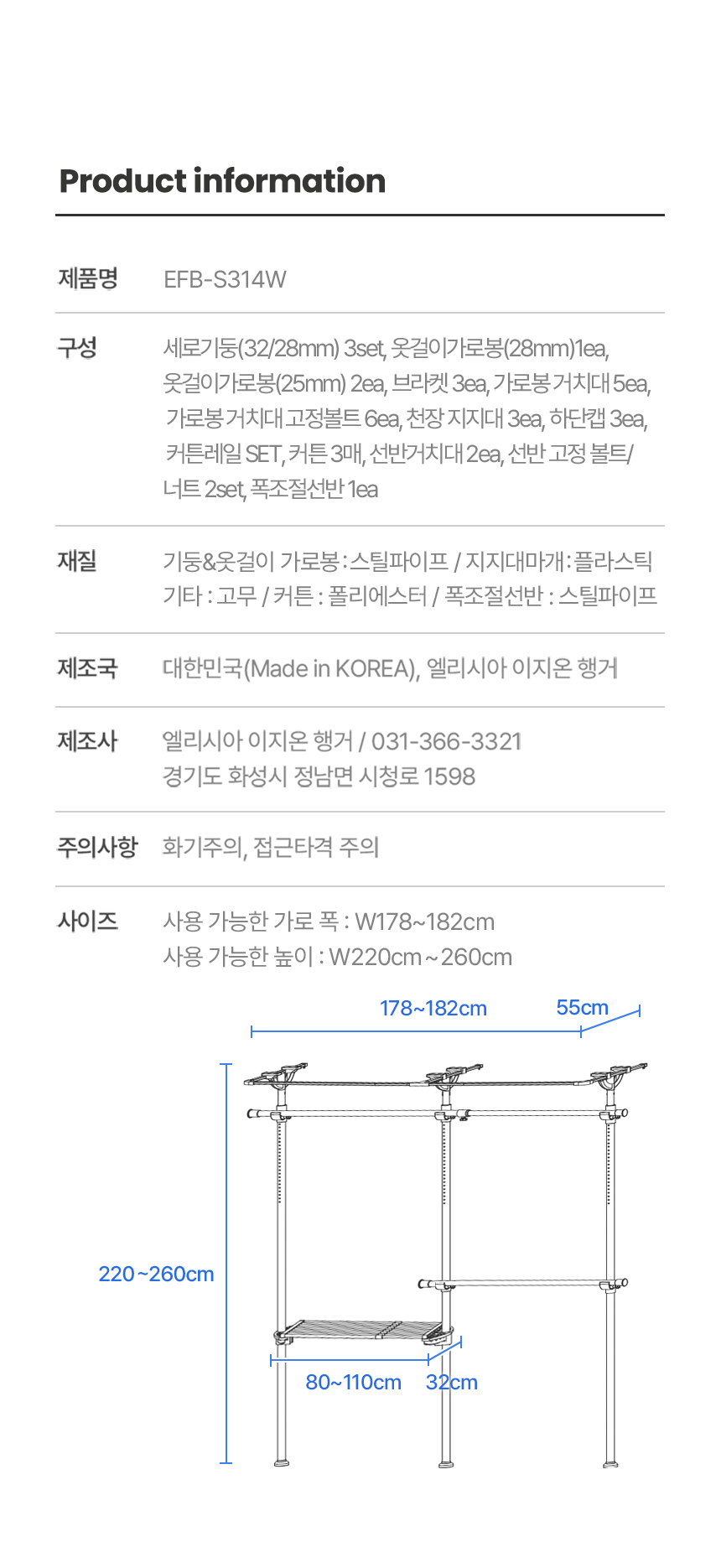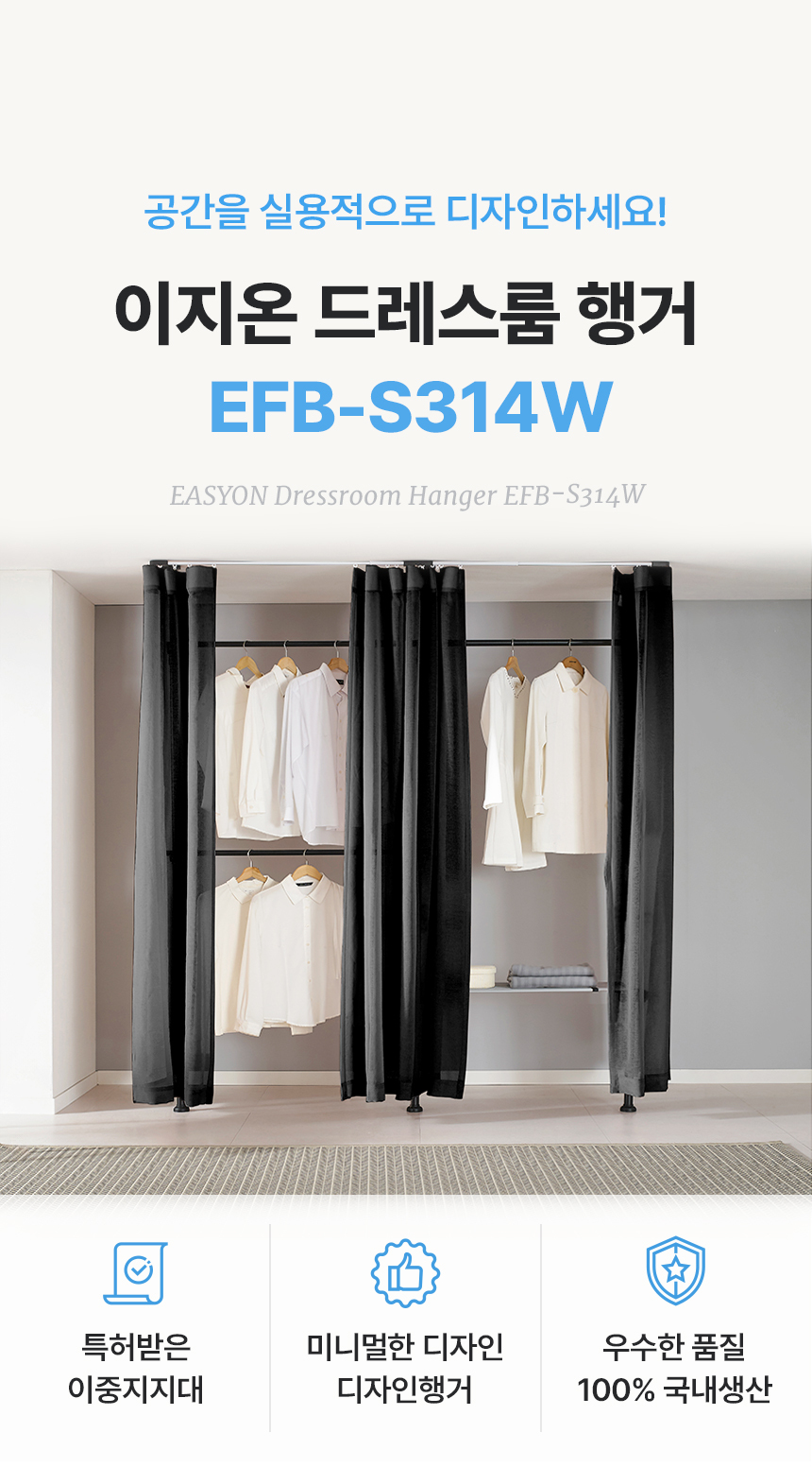 이지온 국민튼튼 EFB-S314W 플랫 시스루 커튼 행거