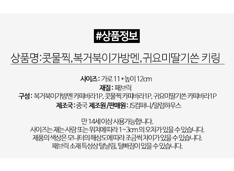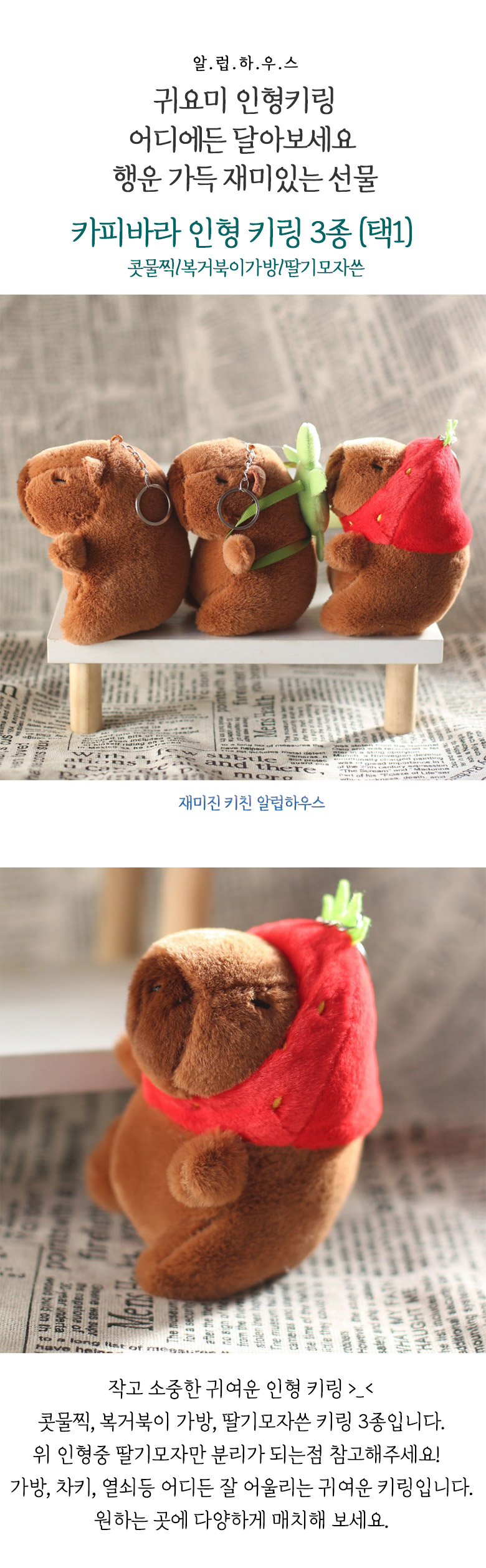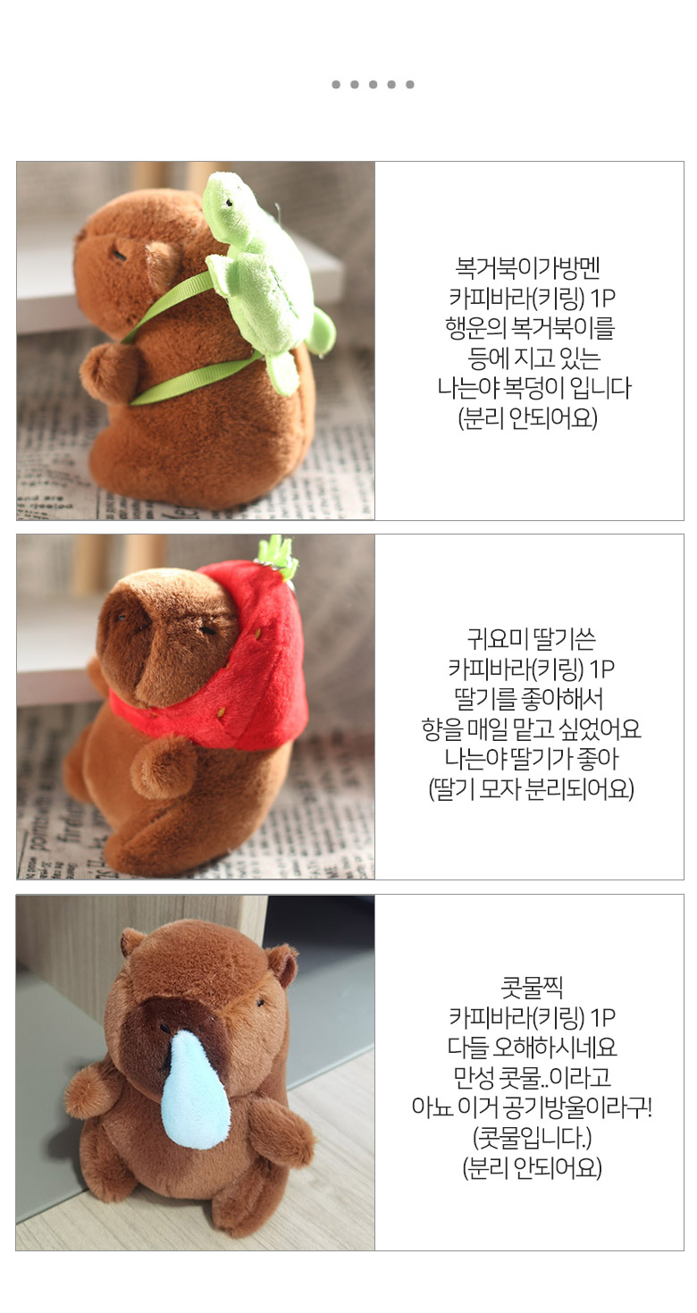 행운 귀여운선물 카피바라 키링 인형 키링 콧물찍 복거북이 가방고리