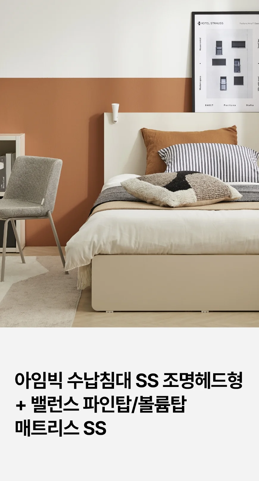 아임빅 수납침대 SS 조명헤드형 + 밸런스 매트리스(2종)