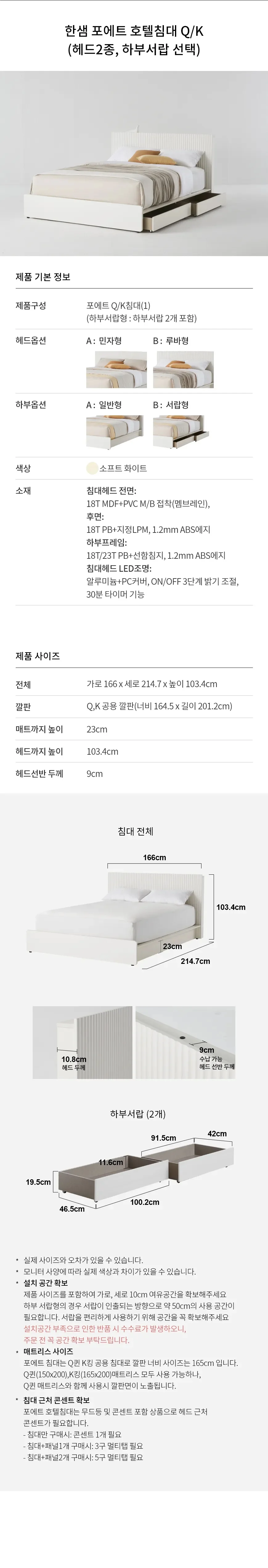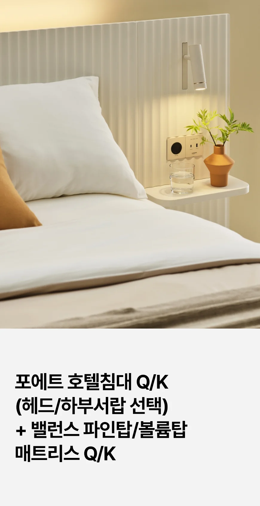 호텔침대 포에트 침대 Q/K (헤드2종,하부서랍 선택) + 밸런스 매트리스(2종)
