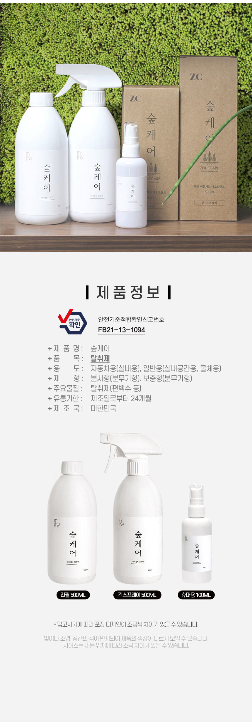 국내산 편백오일 피톤치드 실내탈취제 500ml