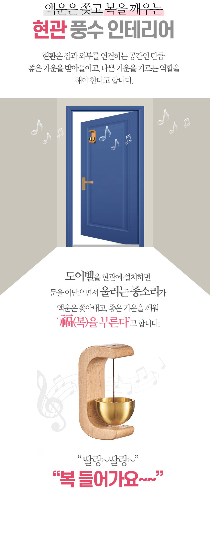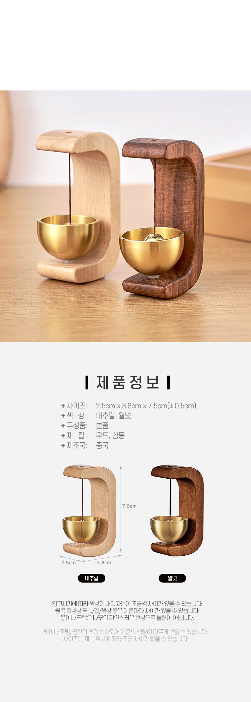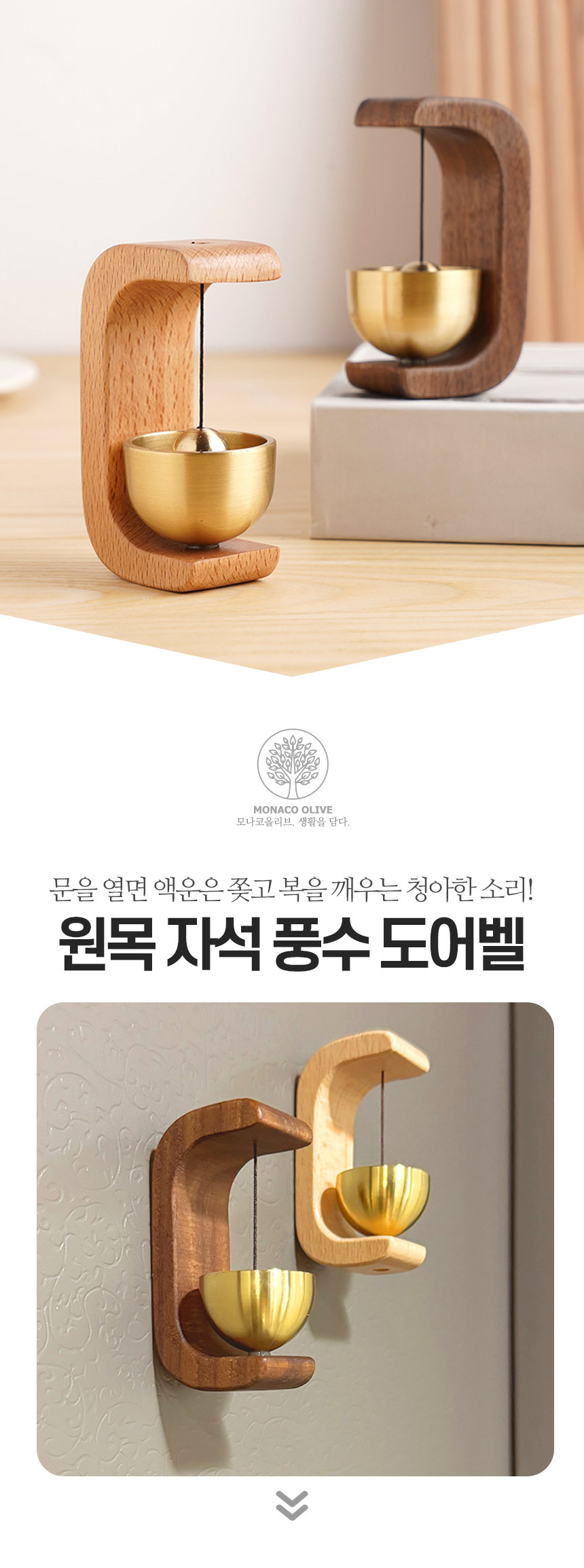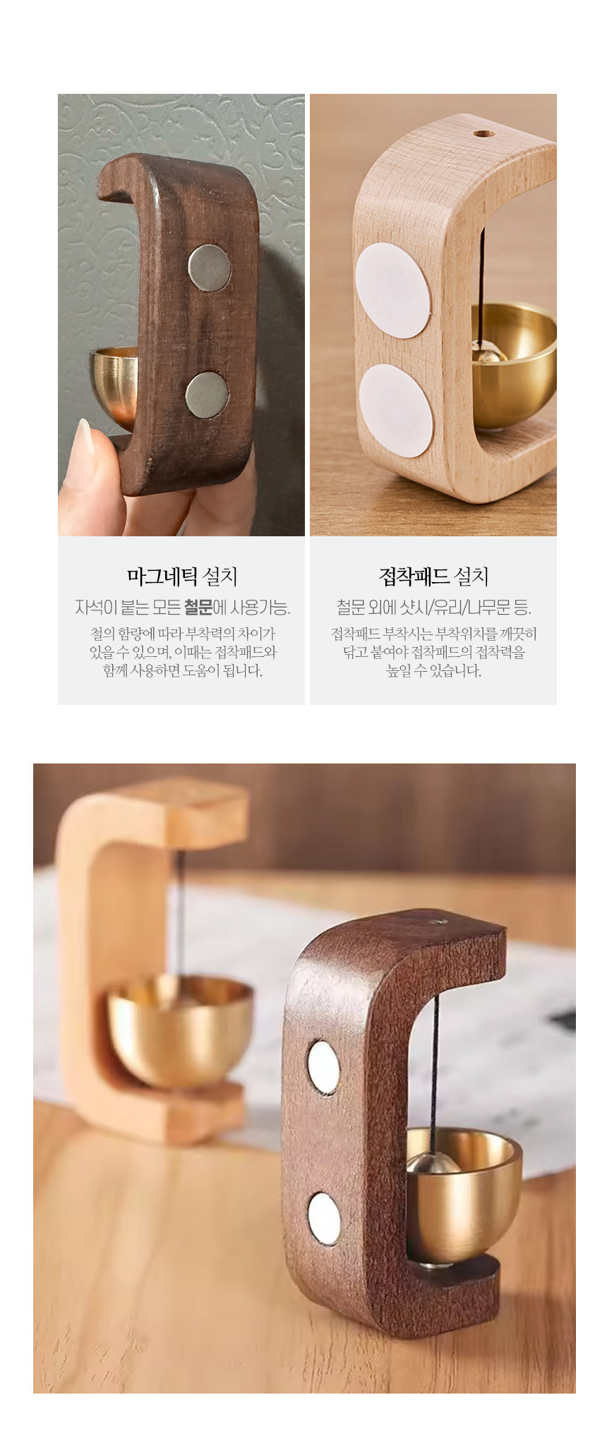 자석부착 우드 현관 도어벨