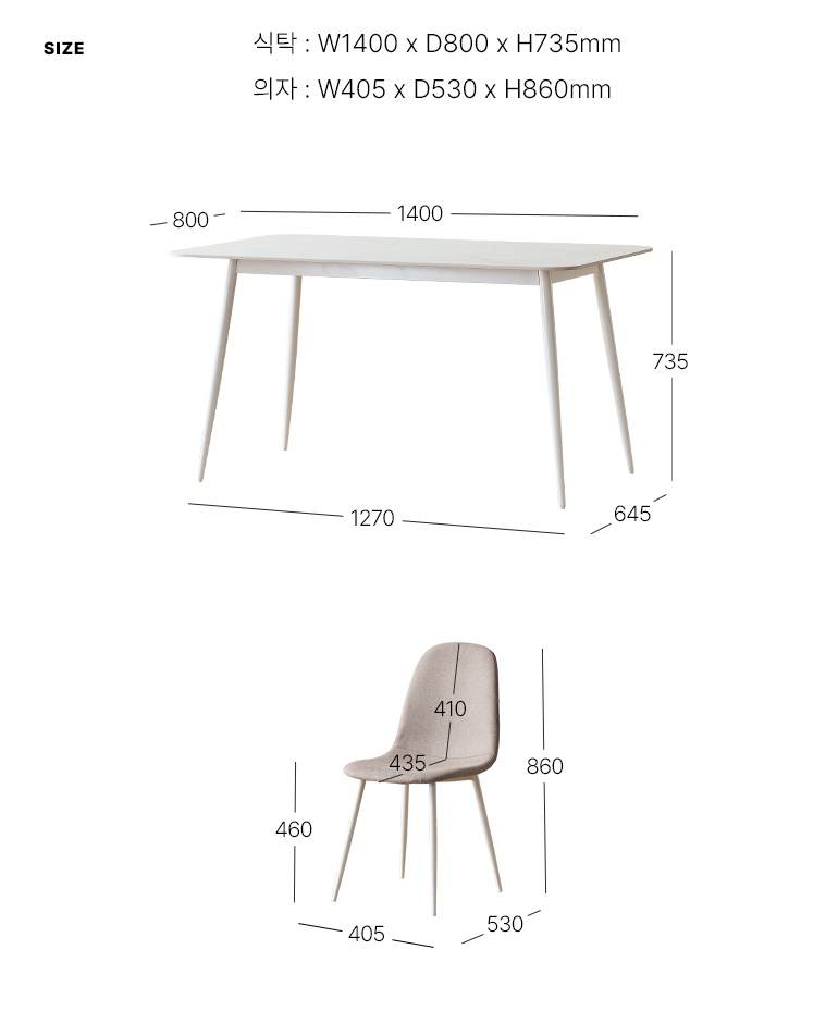 스칸디아 멜리아 통세라믹 마블 스퀘어 4인용 식탁세트/ 의자포함 4EA