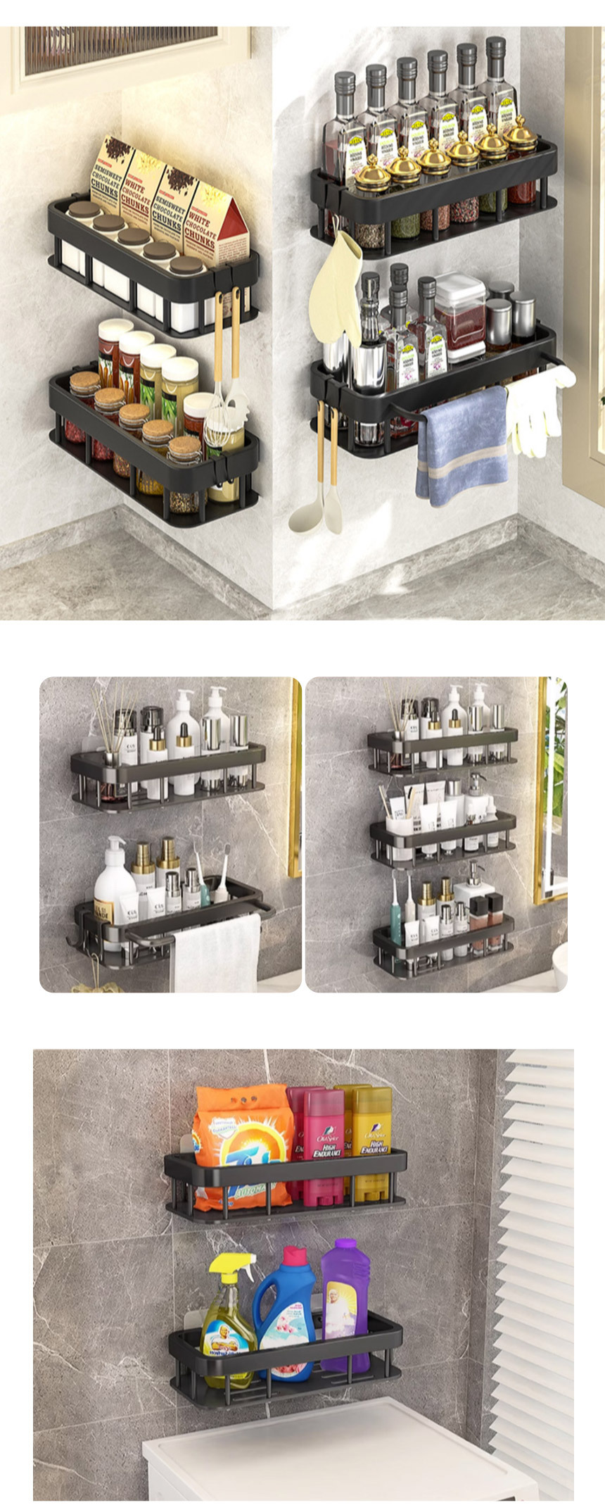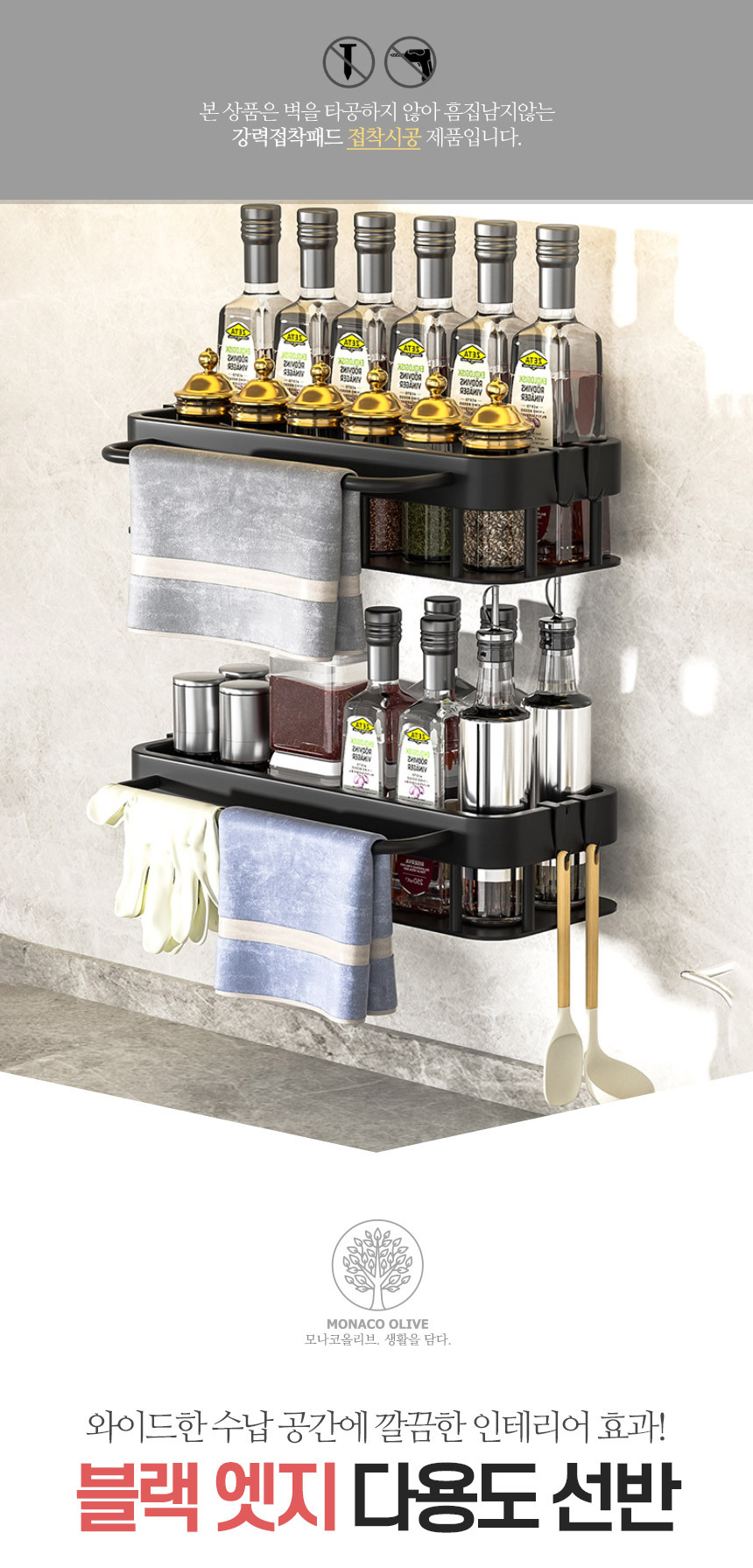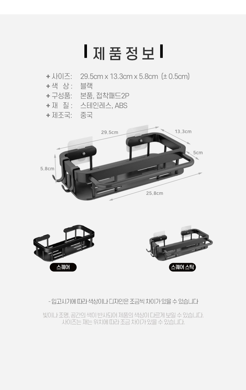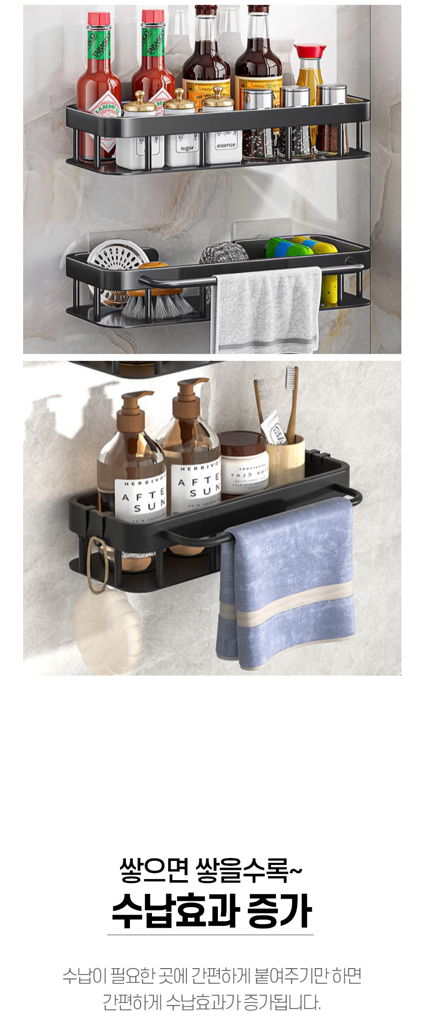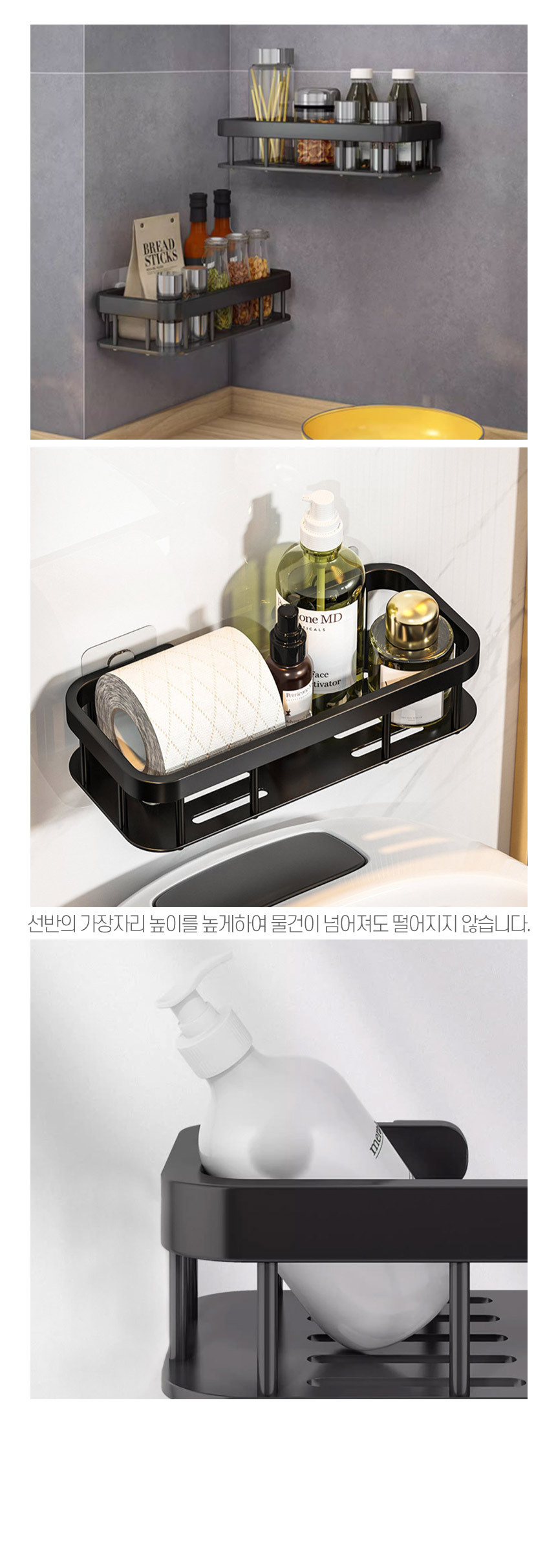 무타공 블랙엣지 일자 욕실선반 욕실정리대