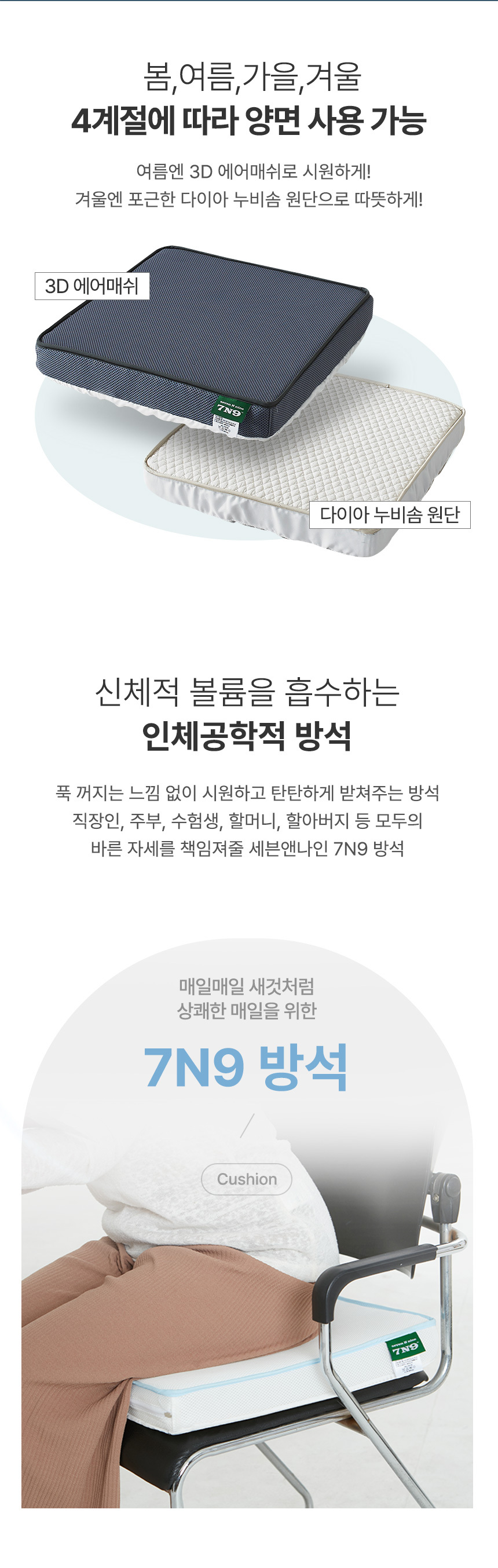 세븐앤나인 양면형 통풍 쿨 방석 시트 7N9-SC 여름쿨,겨울핫 올인원 의자방석