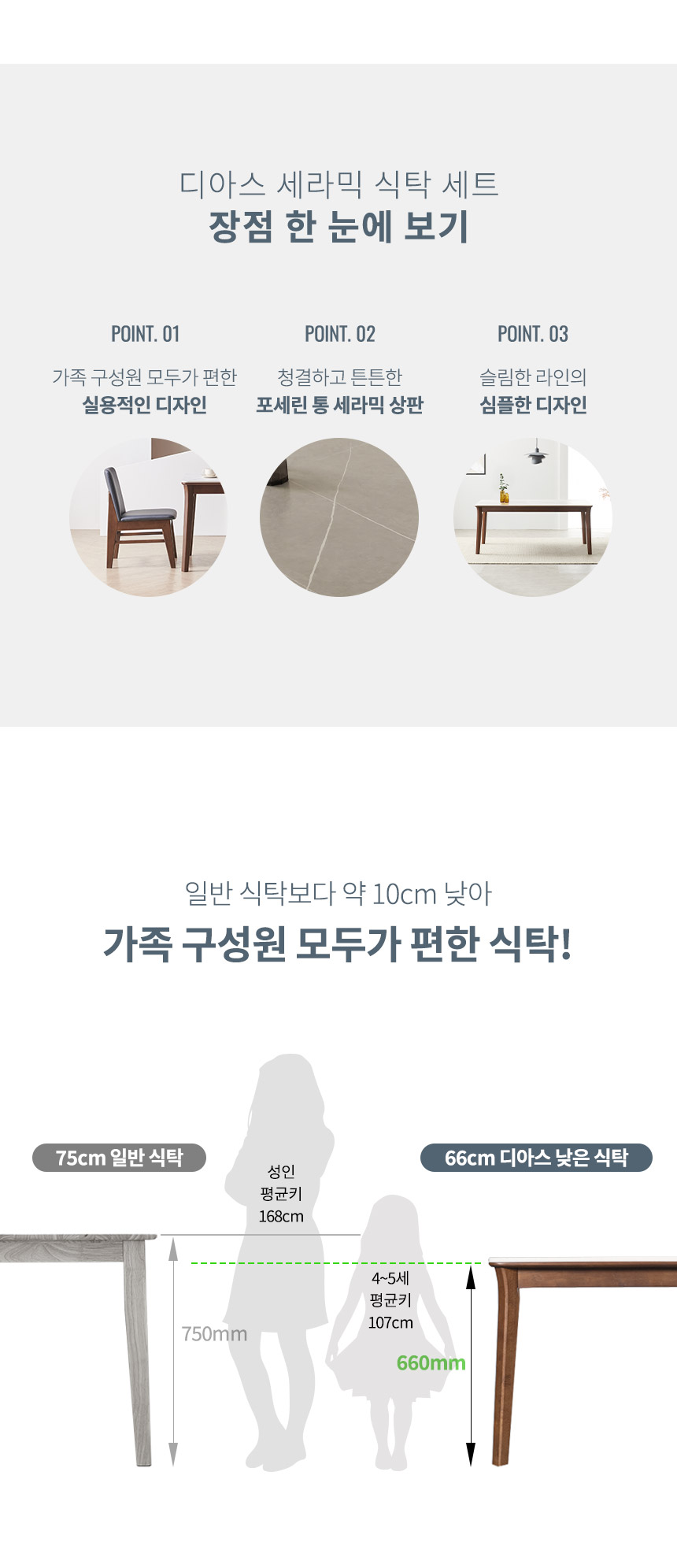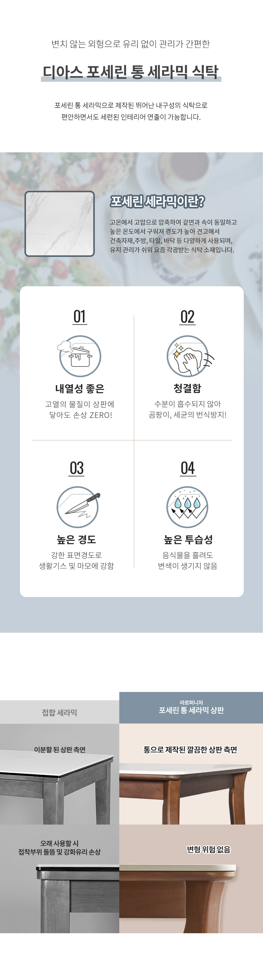 라로퍼니처 디아스 1400 포세린 통 세라믹 낮은 패밀리 4인 식탁 세트