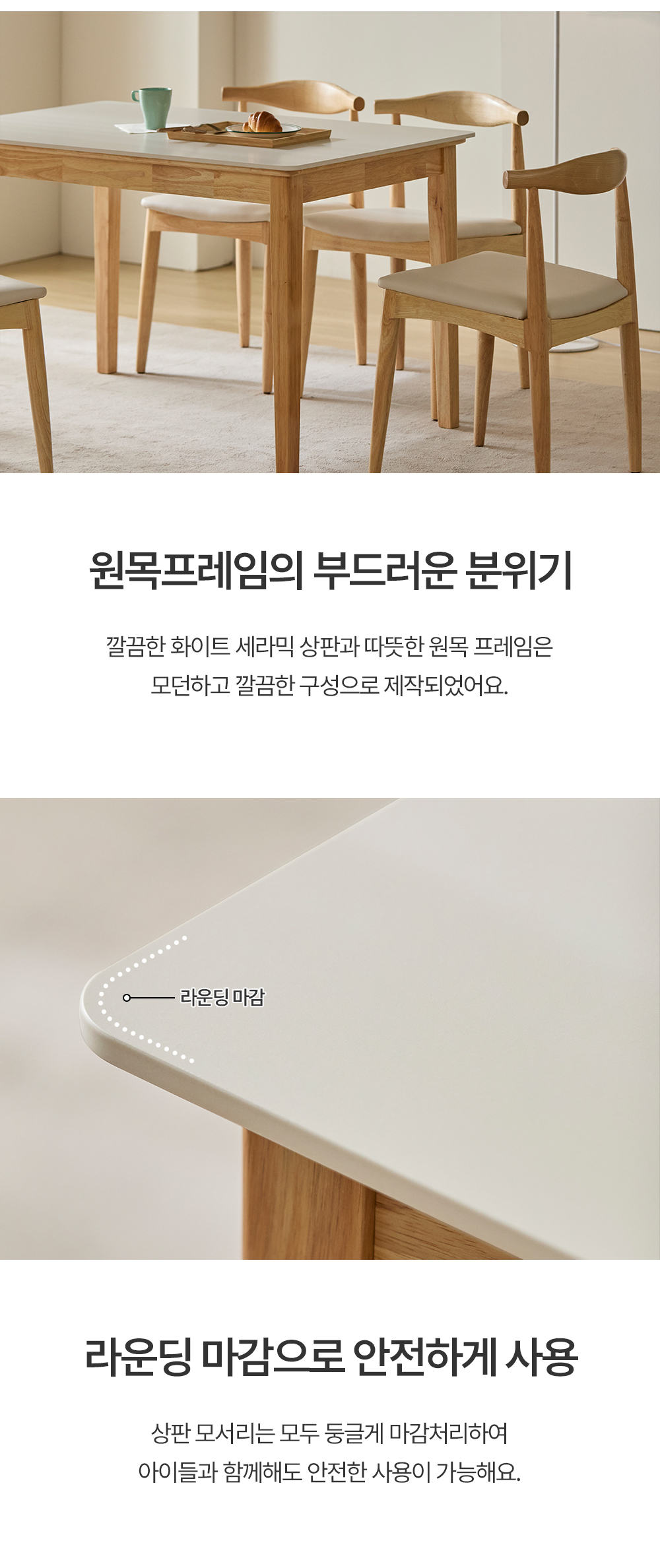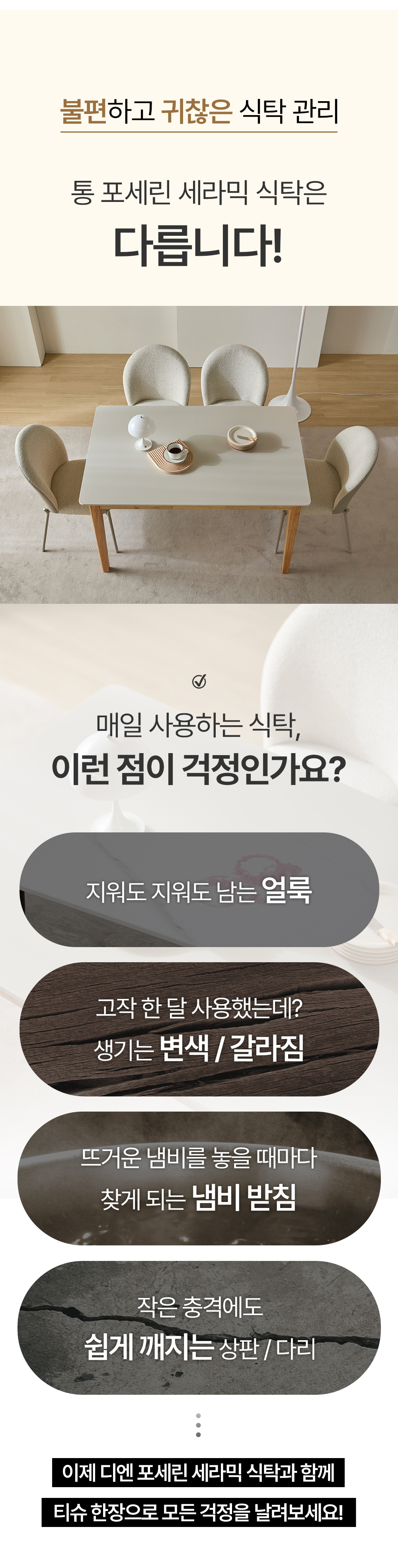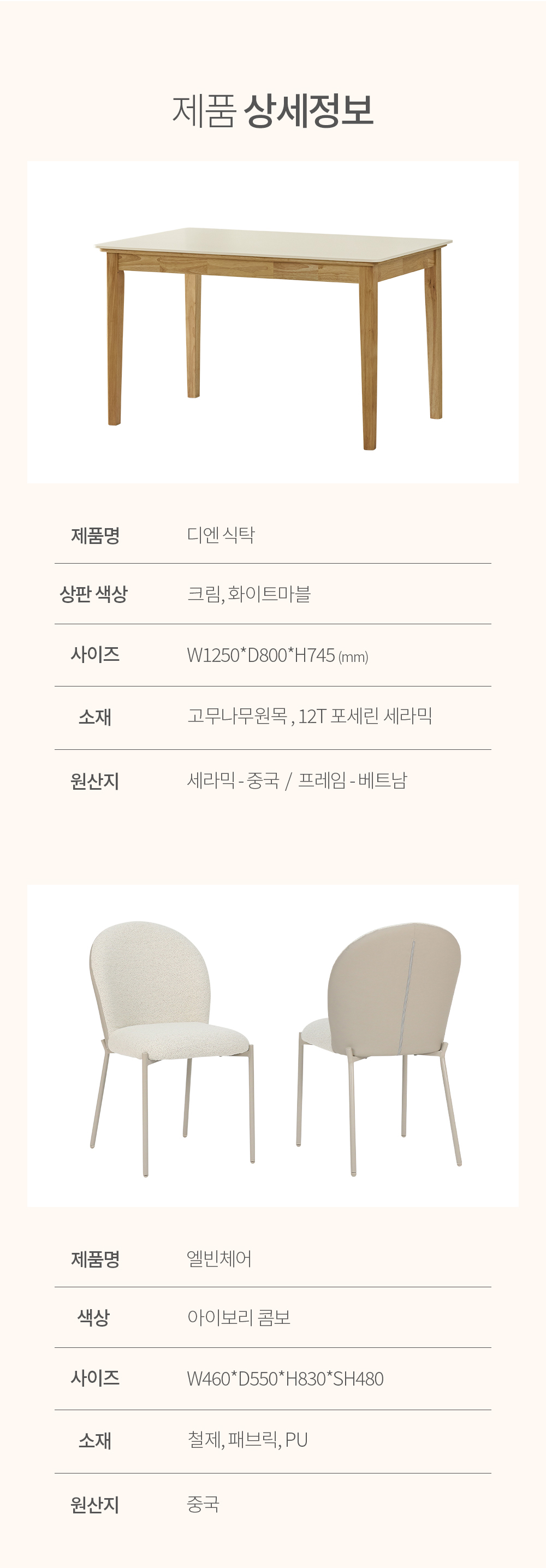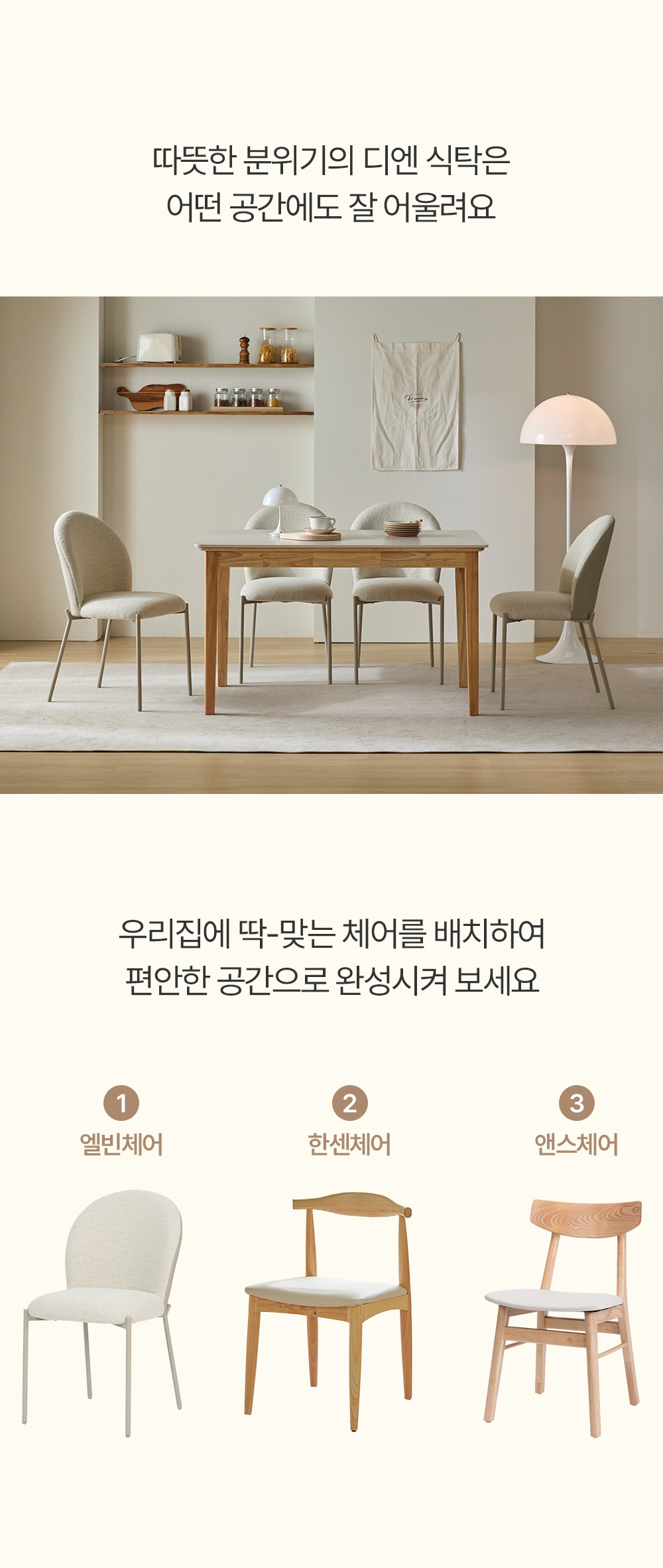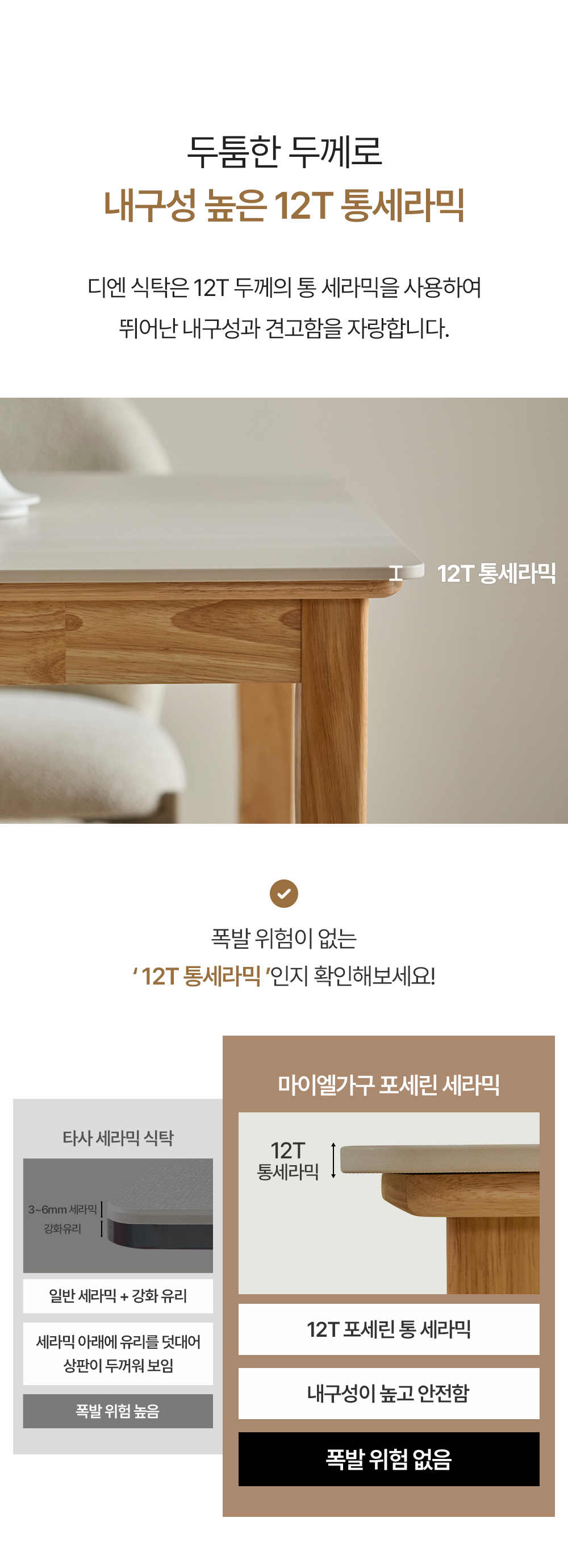 마이엘가구 디엔 4인용 포세린 세라믹 다이닝 테이블 식탁세트 1250 1400