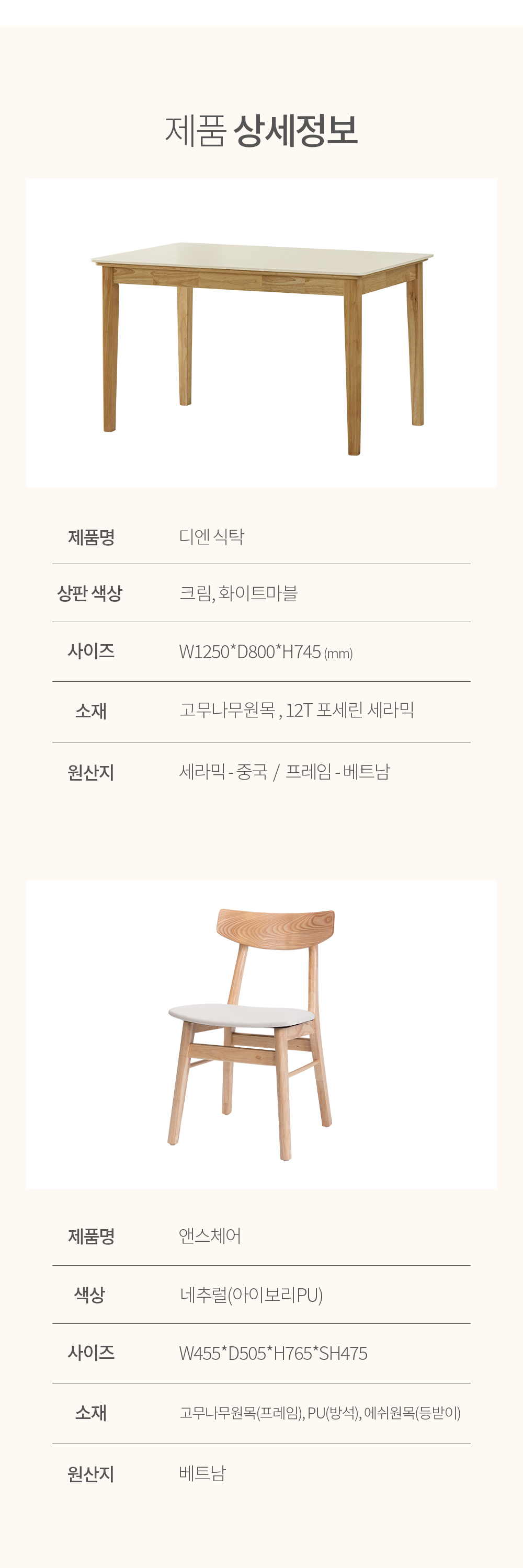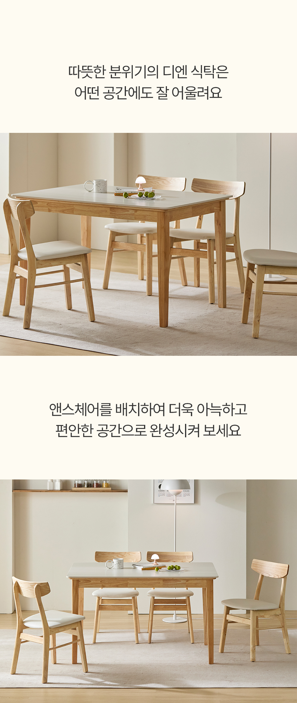 마이엘가구 디엔 4인용 포세린 세라믹 테이블 식탁세트 1250 1400 (앤스체어 구성)