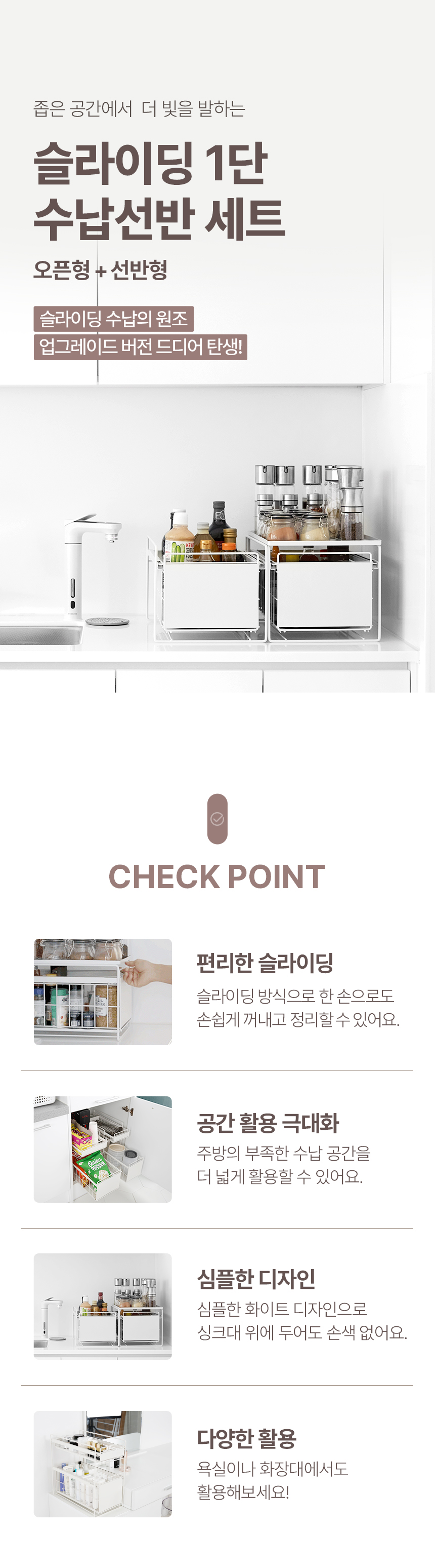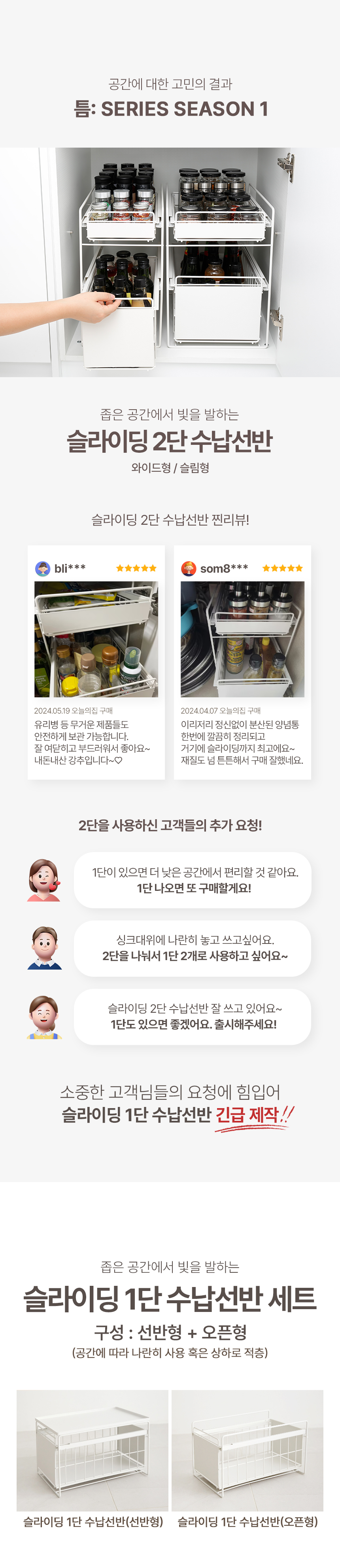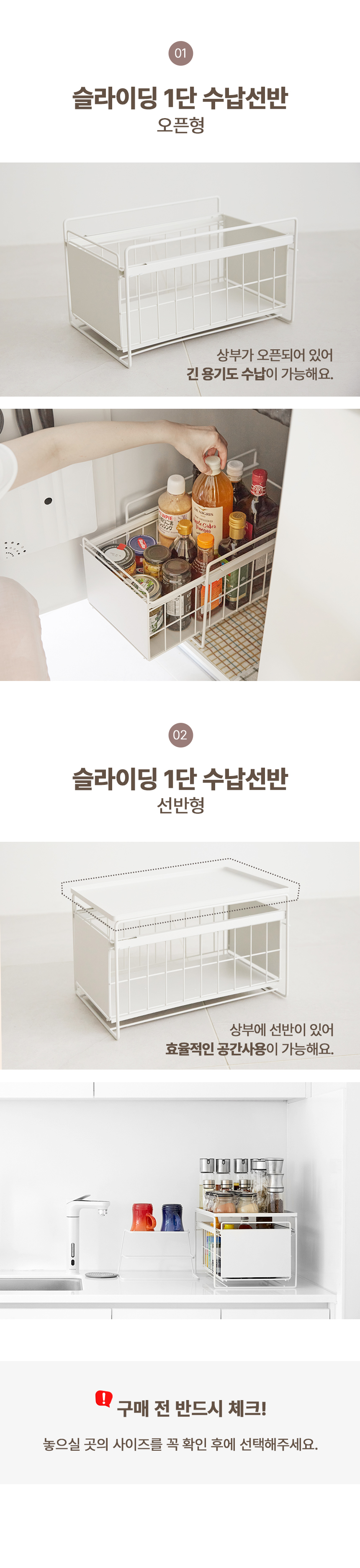 슬라이딩 1단 수납선반 세트(오픈형+선반형)