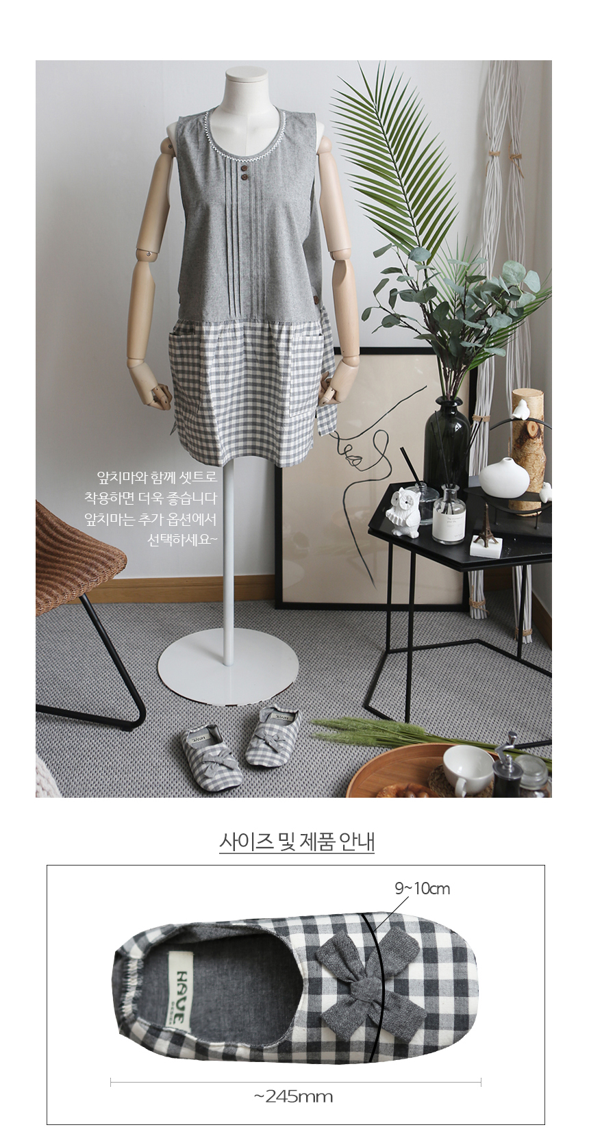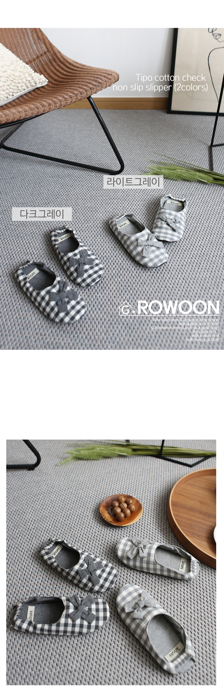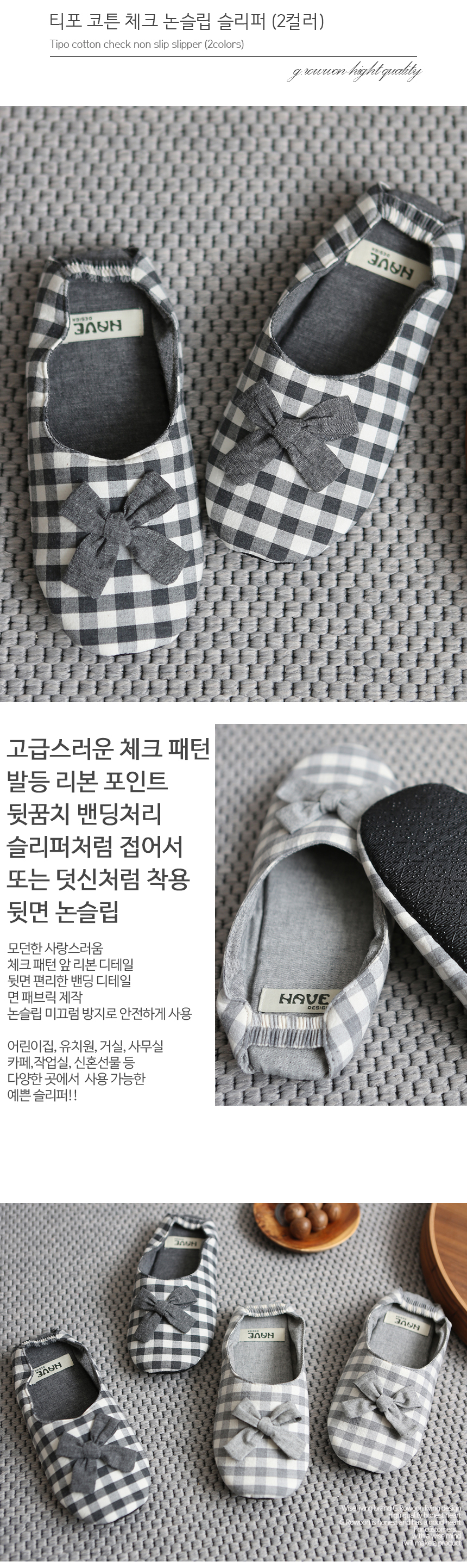 [ 체크 패턴 리본포이트 뒷면 밴딩 디테일 / 뒷면논슬립 / ~245mm / 가볍고 편안한 착용감 / 카페 공방 주방 바리스타 신혼집 선물 인테리어 슬리퍼 / 2컬러 ]