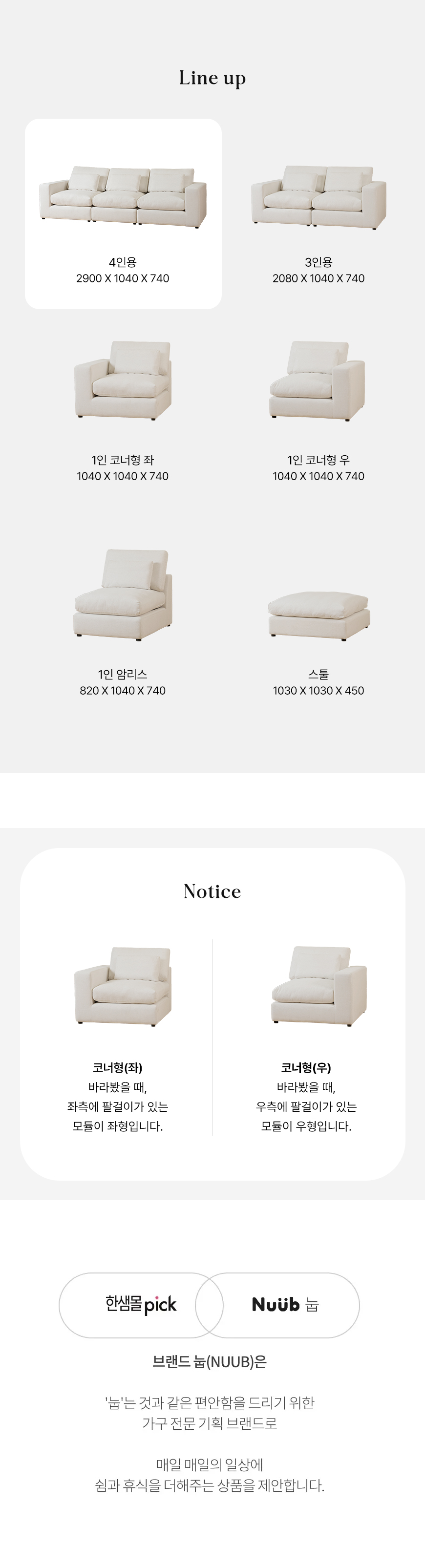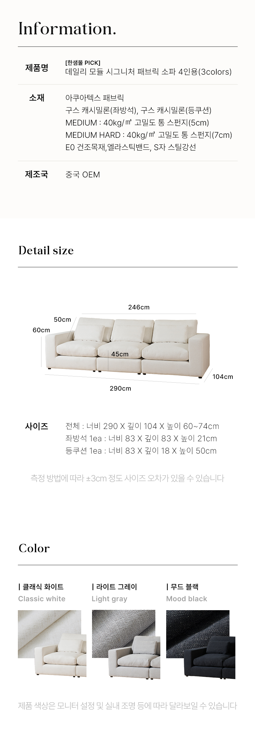 [특가 ~12/29](한샘몰pick) 데일리 구스 모듈 시그니처 패브릭소파 4인용 (3colors)