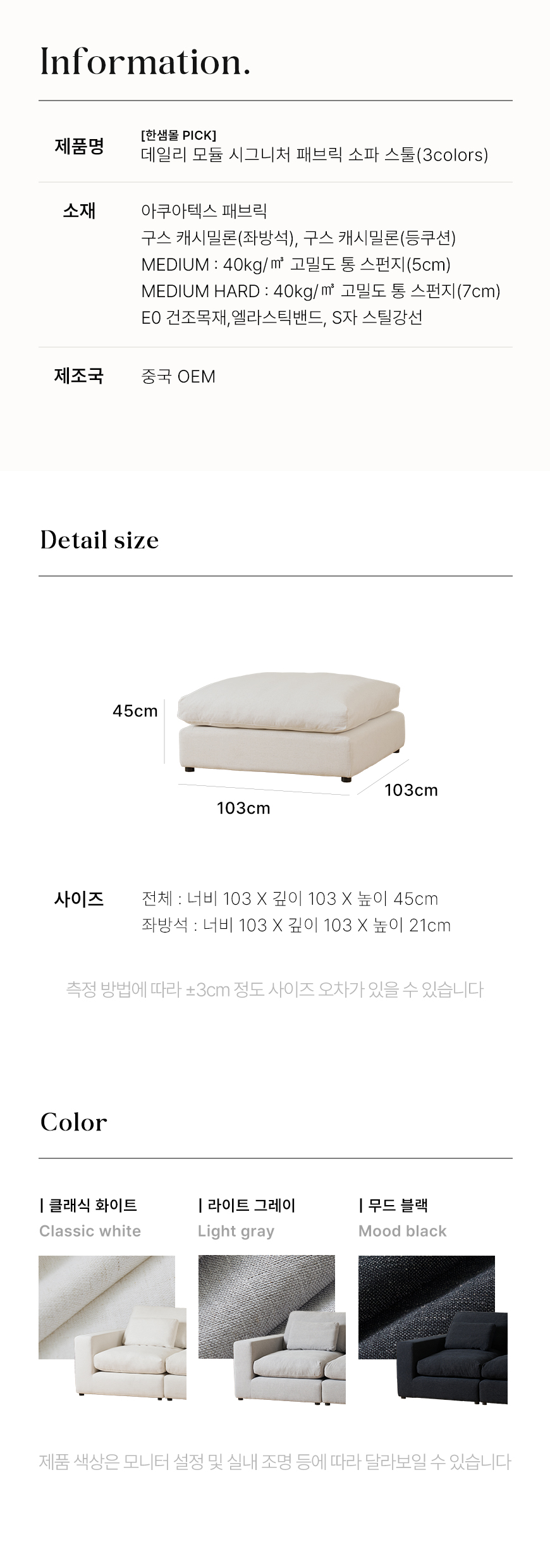 (한샘몰pick) 데일리 구스 모듈 시그니처 패브릭소파 스툴 (3colors)