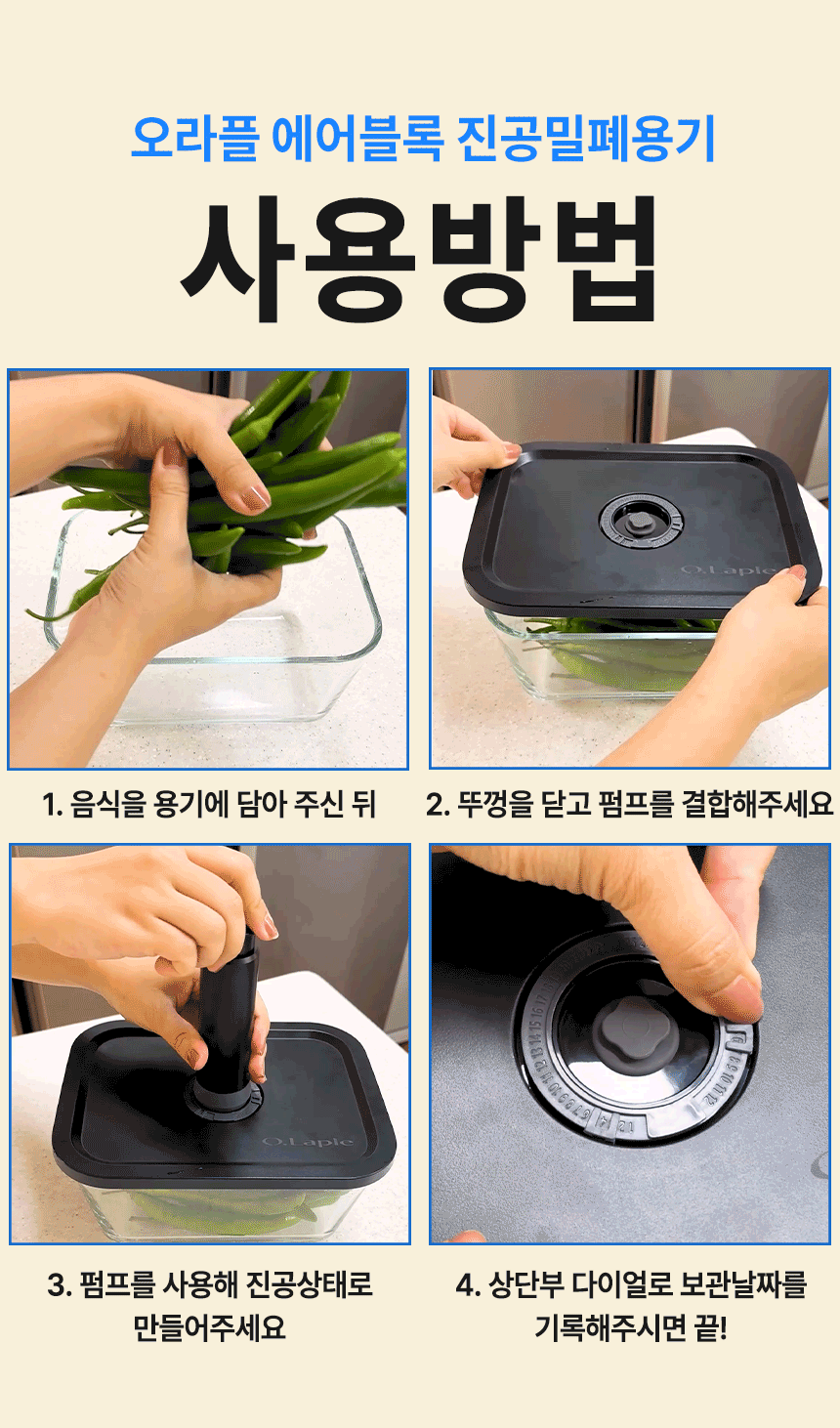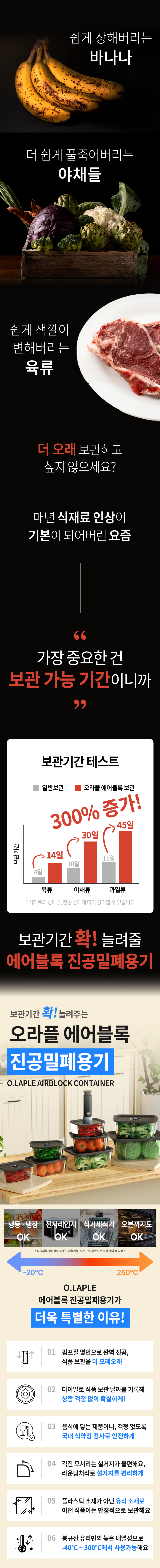 오라플 진공 유리 밀폐용기 3종세트 전자렌지 냉동 보관 반찬통