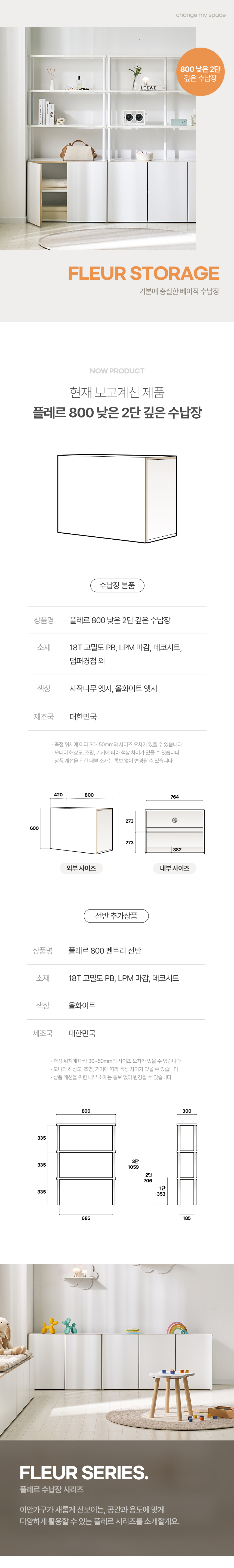 플레르 속깊은 2단 800 수납장 거실 펜트리