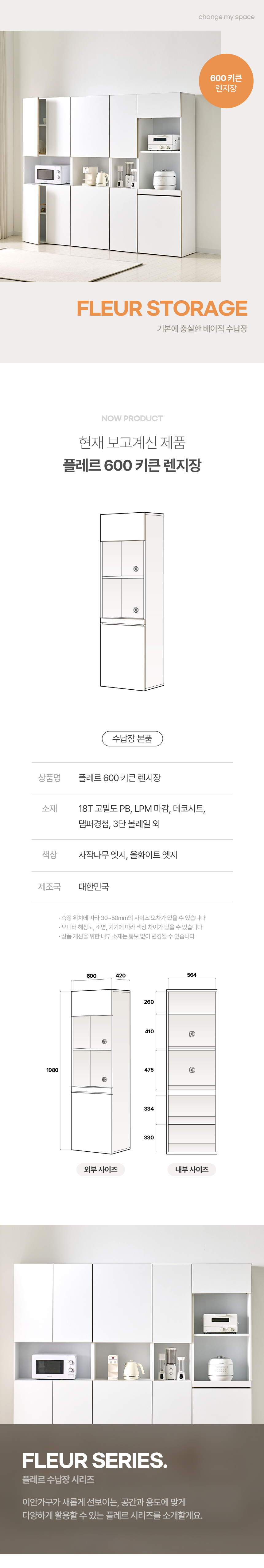 플레르 속깊은 600 키큰 주방 렌지대수납장 다용도 펜트리